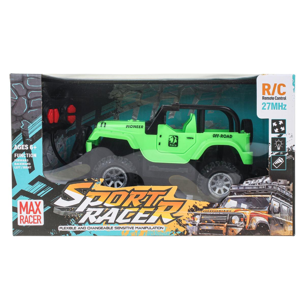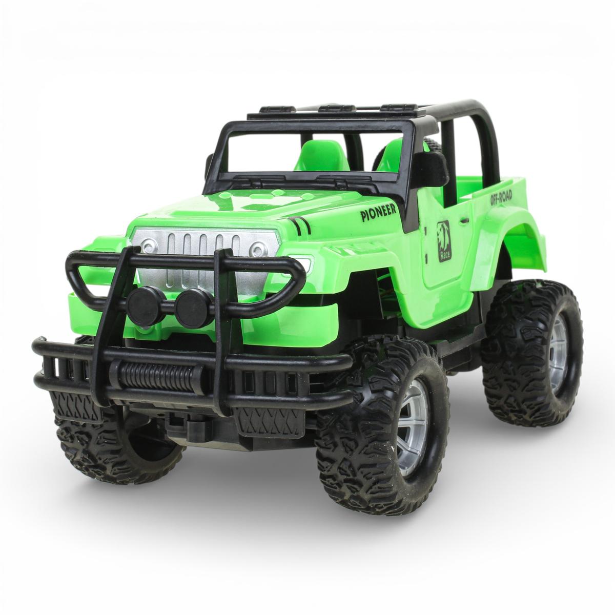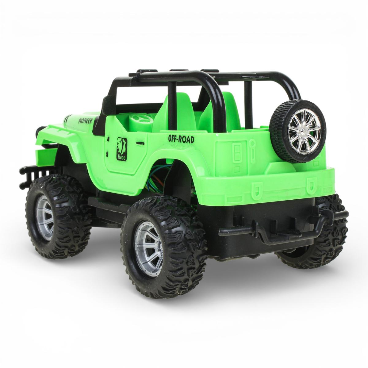Корпус выполнен из прочного пластика, устойчивого к активной игре. Детализированный дизайн с каркасом безопасности, запасным колесом и внедорожными элементами делает джип особенно привлекательным для любителей техники. Оптимальный размер машинки — около 24 см в длину — обеспечивает баланс между компактностью и устойчивостью во время движения.