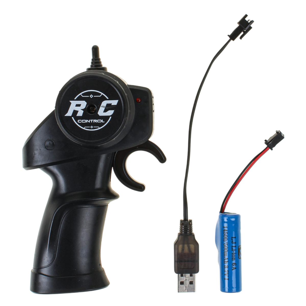 Модель оснащена пультом пистолетного типа с удобным рулевым колесом и курком. Управление интуитивно понятное: движение вперёд и назад, повороты влево и вправо. Частота 2.4GHz обеспечивает стабильный сигнал и комфортную игру без помех. Джип подойдёт детям от 6 лет и станет отличным выбором для первых заездов на радиоуправлении.