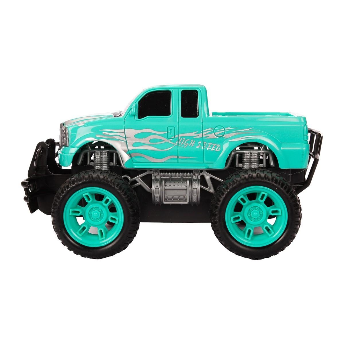 Радиоуправляемый джип «HIGH SPEED», бирюзовый с серебристым дизайном, большие колеса, пульт ДУ