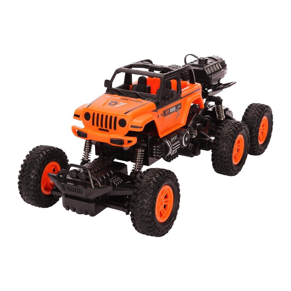 Игрушка подходит для использования в домашних условиях и на открытом воздухе, особенно на неровных и сложных поверхностях. Управление осуществляется через компактный пульт с эргономичной формой и удобными кнопками, что обеспечивает точную и легкую маневренность джипа в любых условиях.