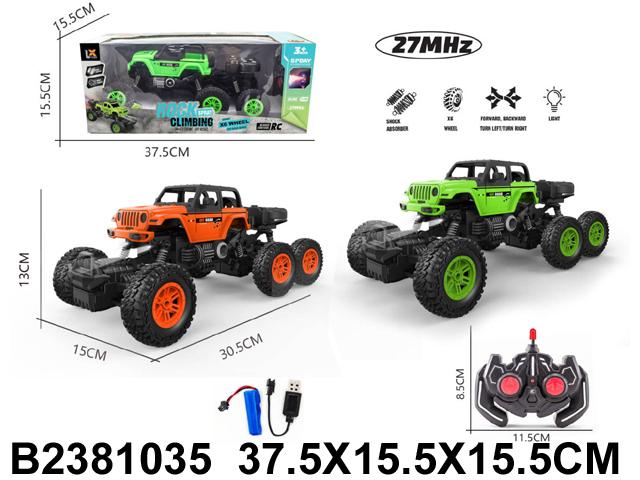 Размеры джипа: 37,5 х 15,5 х 15,5 см. Пульт управления имеет размеры 8,5 х 11,5 см. Радиус действия пульта до 30 метров (27 МГц).