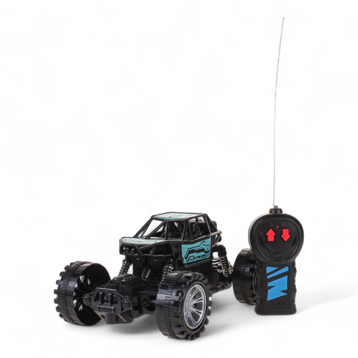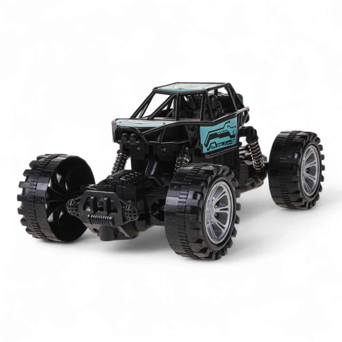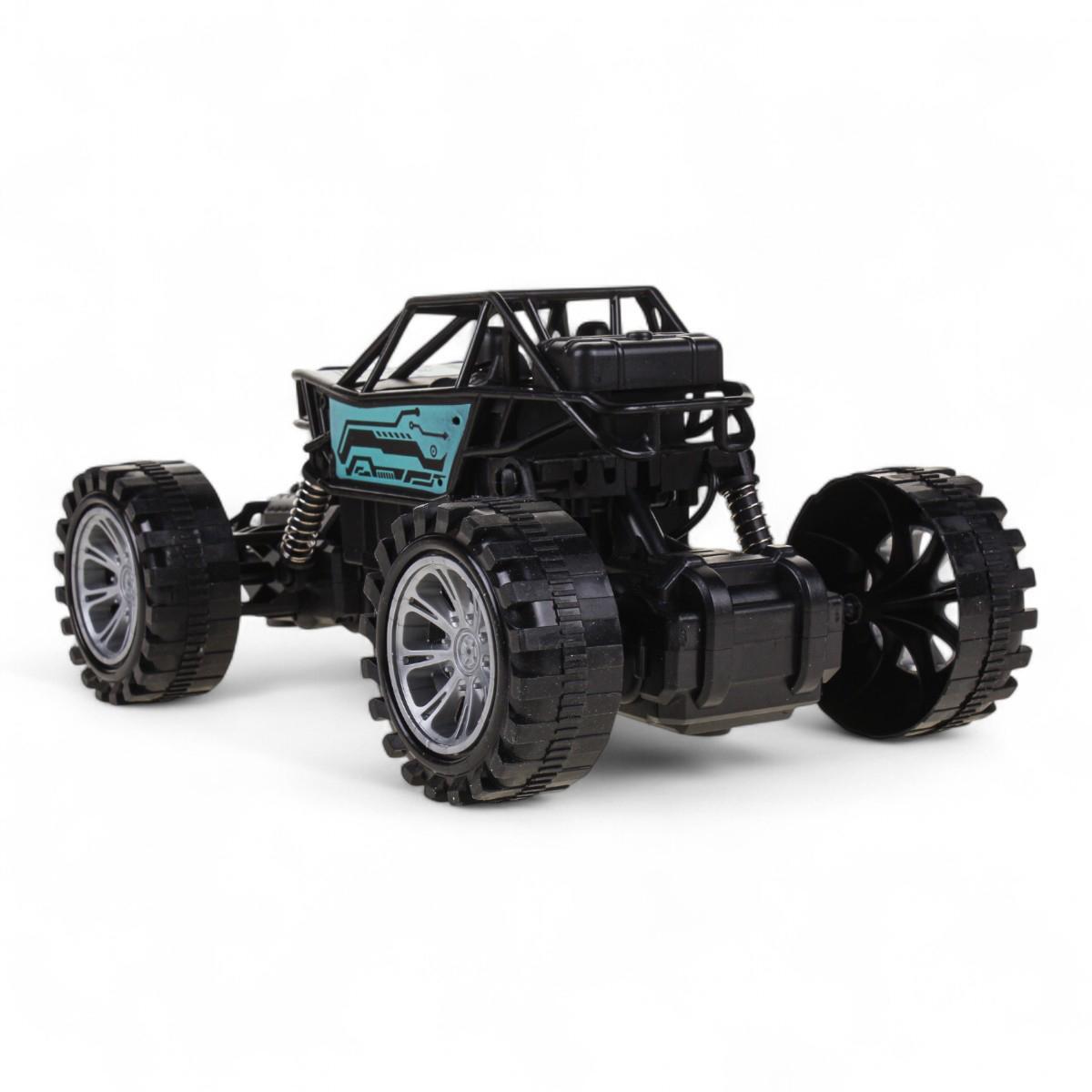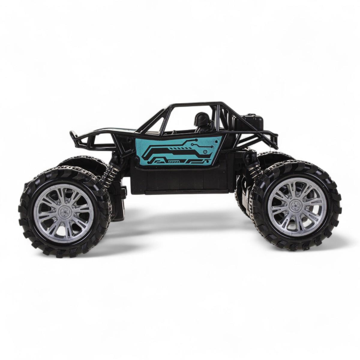 Агрессивный дизайн с черно-голубым оформлением и большими колесами превращает игру в настоящее приключение. Ударопрочный пластиковый корпус выдерживает активное использование, а эргономичный пульт удобно лежит в детской руке.