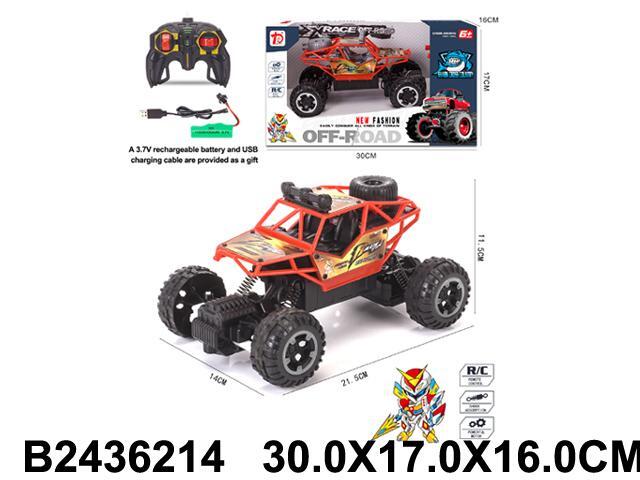 В наборе вы получите полностью готовую к использованию модель: сам джип (30×17×16 см), пульт управления с антенной и кабель для зарядки. Конструкция с открытыми колесами и приподнятым шасси обеспечивает преодоление препятствий высотой до 3 см. Легкий вес (менее 1 кг) делает игрушку безопасной для детей, а прочный каркас выдерживает падения с небольших высот.