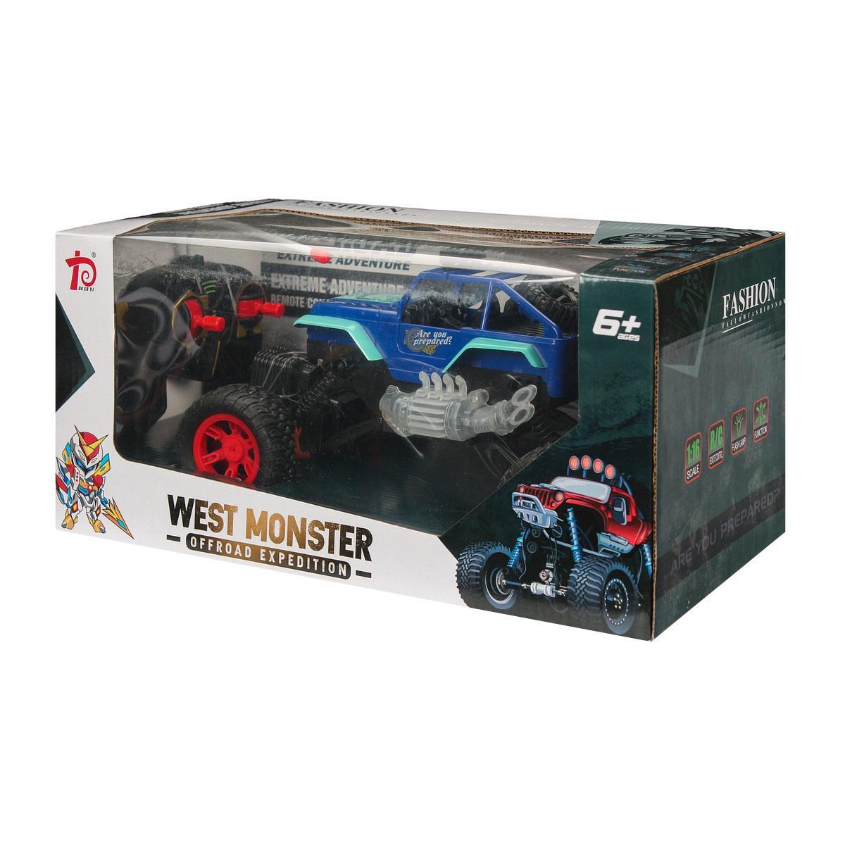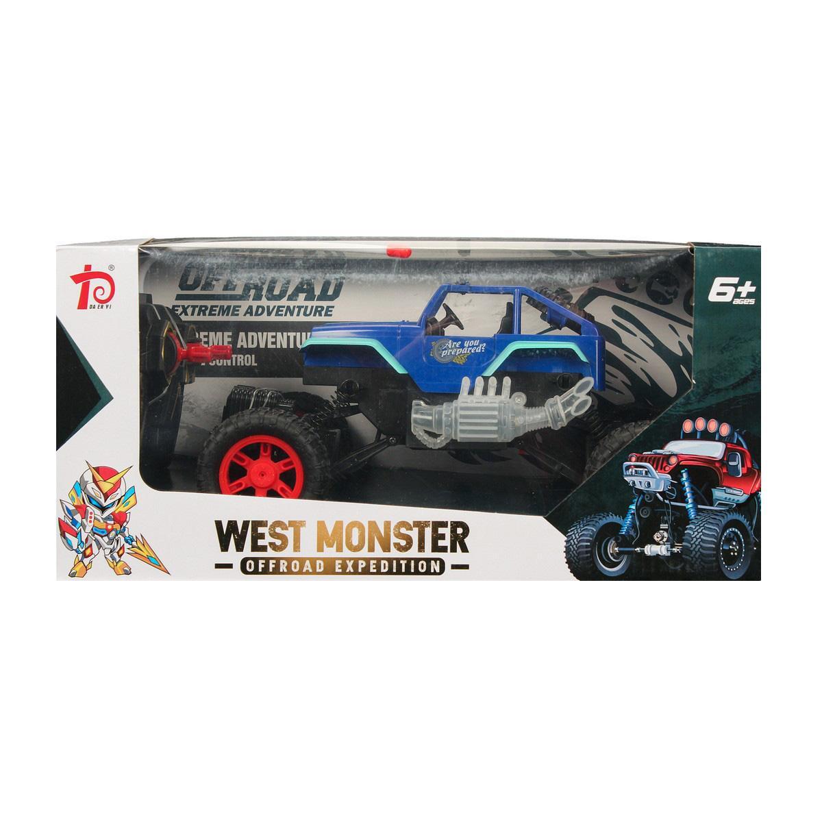 Джип на радиоуправлении "WEST MONSTER", синий/красный, световые эффекты, пластик