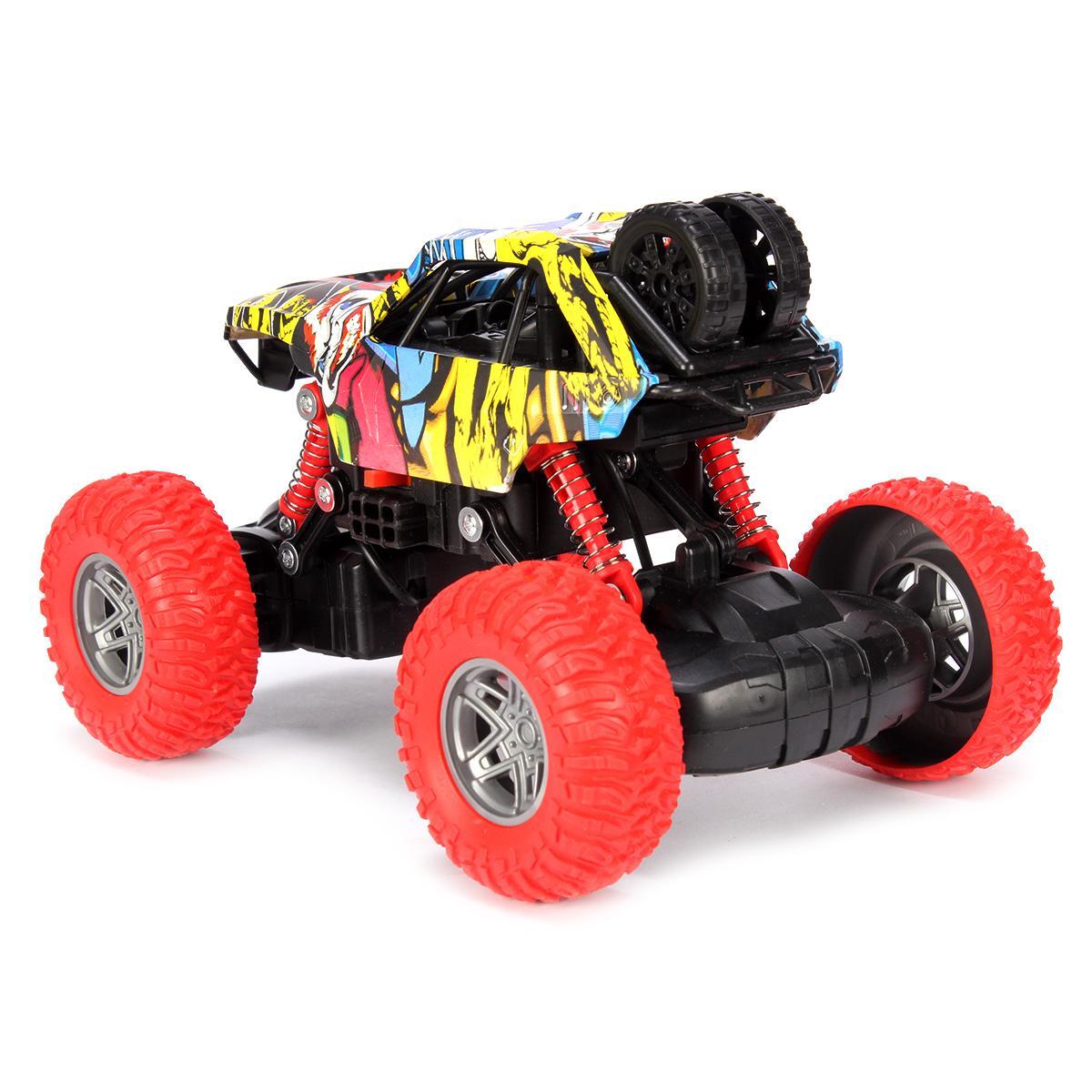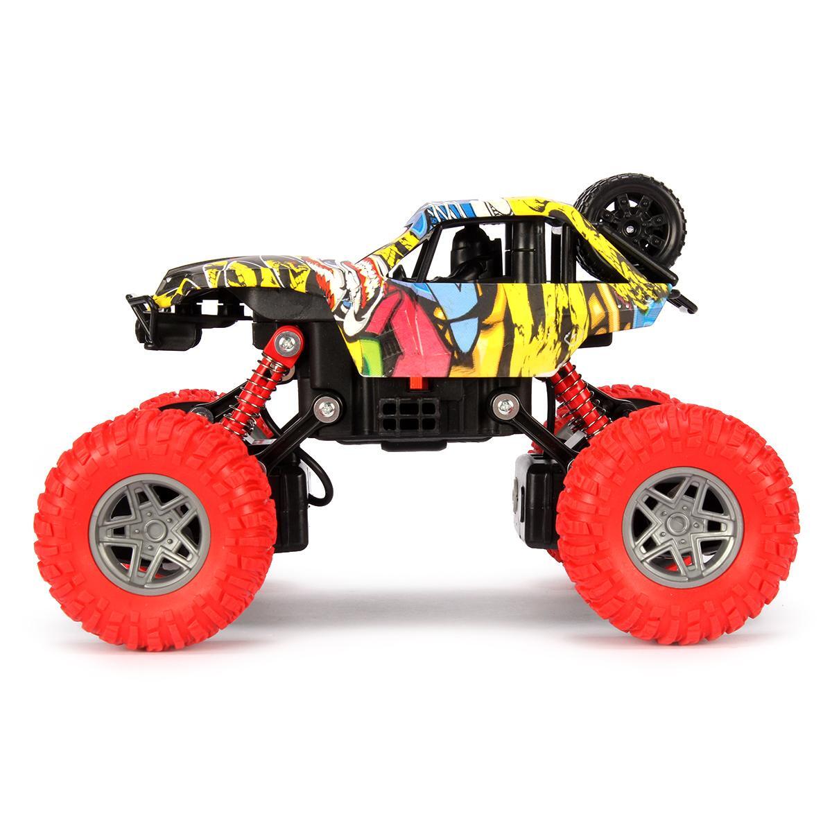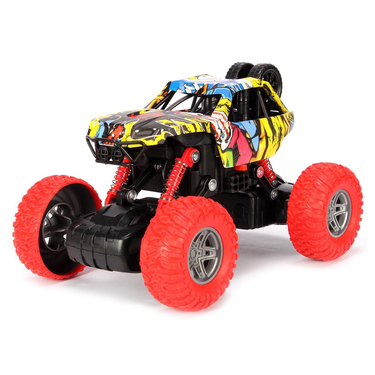 Почему стоит выбрать именно этот внедорожник? Во-первых, его яркий и привлекательный дизайн с графическими элементами в желтых, красных и синих тонах привлечет внимание любого ребенка. Во-вторых, благодаря амортизаторам, внедорожник способен преодолевать неровности и препятствия, что делает игру еще более увлекательной. В-третьих, компактные размеры (23х15х15 см) позволяют легко брать игрушку с собой в поездки или на прогулки.