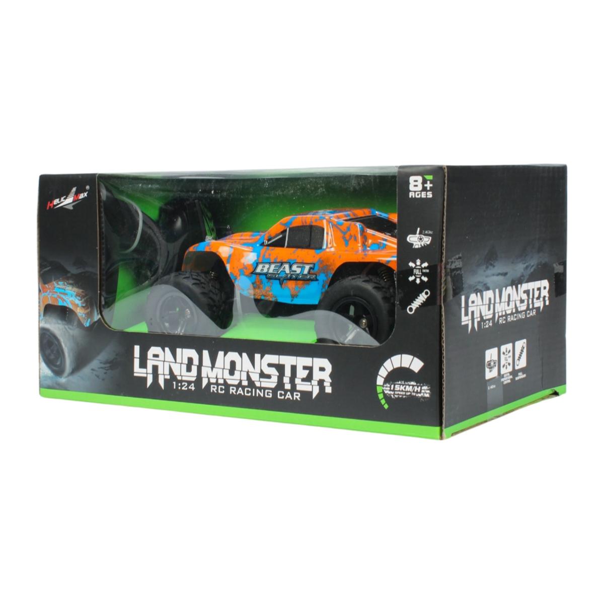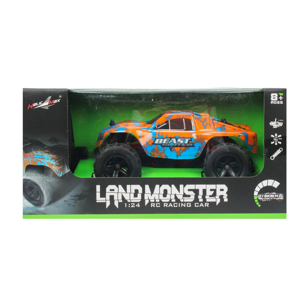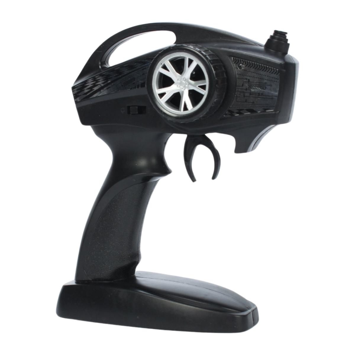 Модель обладает прочным пластиковым корпусом и большими колесами с рифленым протектором, что позволяет легко преодолевать неровности и ездить по разным поверхностям. Управление осуществляется с помощью удобного передатчика, где есть курок для движения вперед/назад и диск для поворота — всё, что нужно для полного контроля. Размер модели — 1:24, что делает её компактной и удобной для транспортировки.