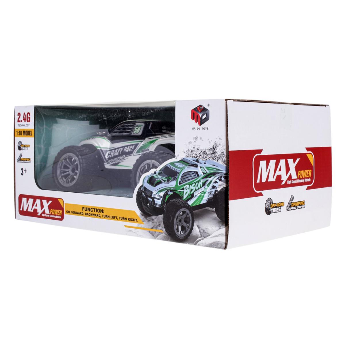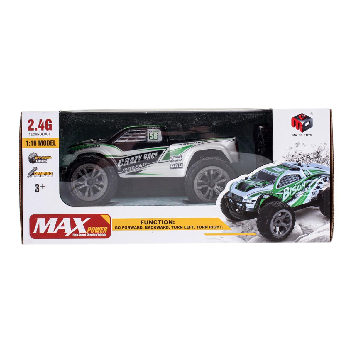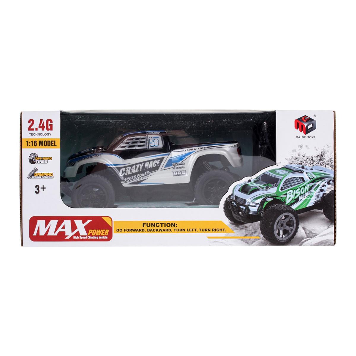 Управление осуществляется на частоте 2.4 ГГц, что гарантирует стабильный сигнал и возможность гонок одновременно с несколькими машинами.