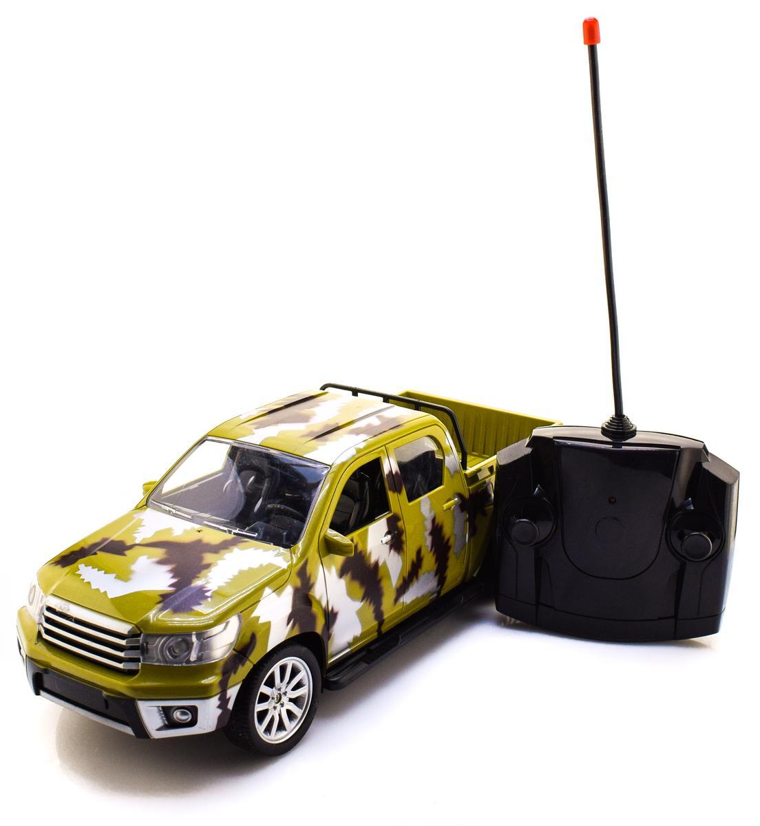 Игрушка идеально подойдет для детей от 6 лет и старше, любящих машины и динамичные погонки. В комплект входит пикап в камуфляжной расцветке, батарейка для автомобиля и пульт управления, работающий от 2 пальчиковых батареек (приобретаются отдельно). Модель обладает четырьмя колесами с металлическими дисками, реалистичными деталями, такими как фары и решетка радиатора, что придает ей исключительный внешний вид и эффект присутствия на поле боя или в гоночной трассе.
