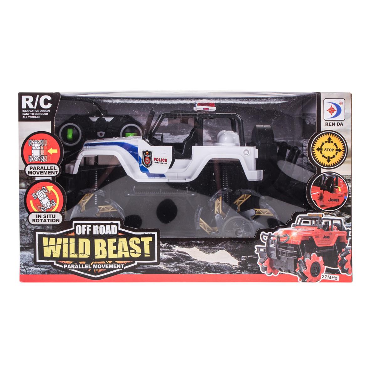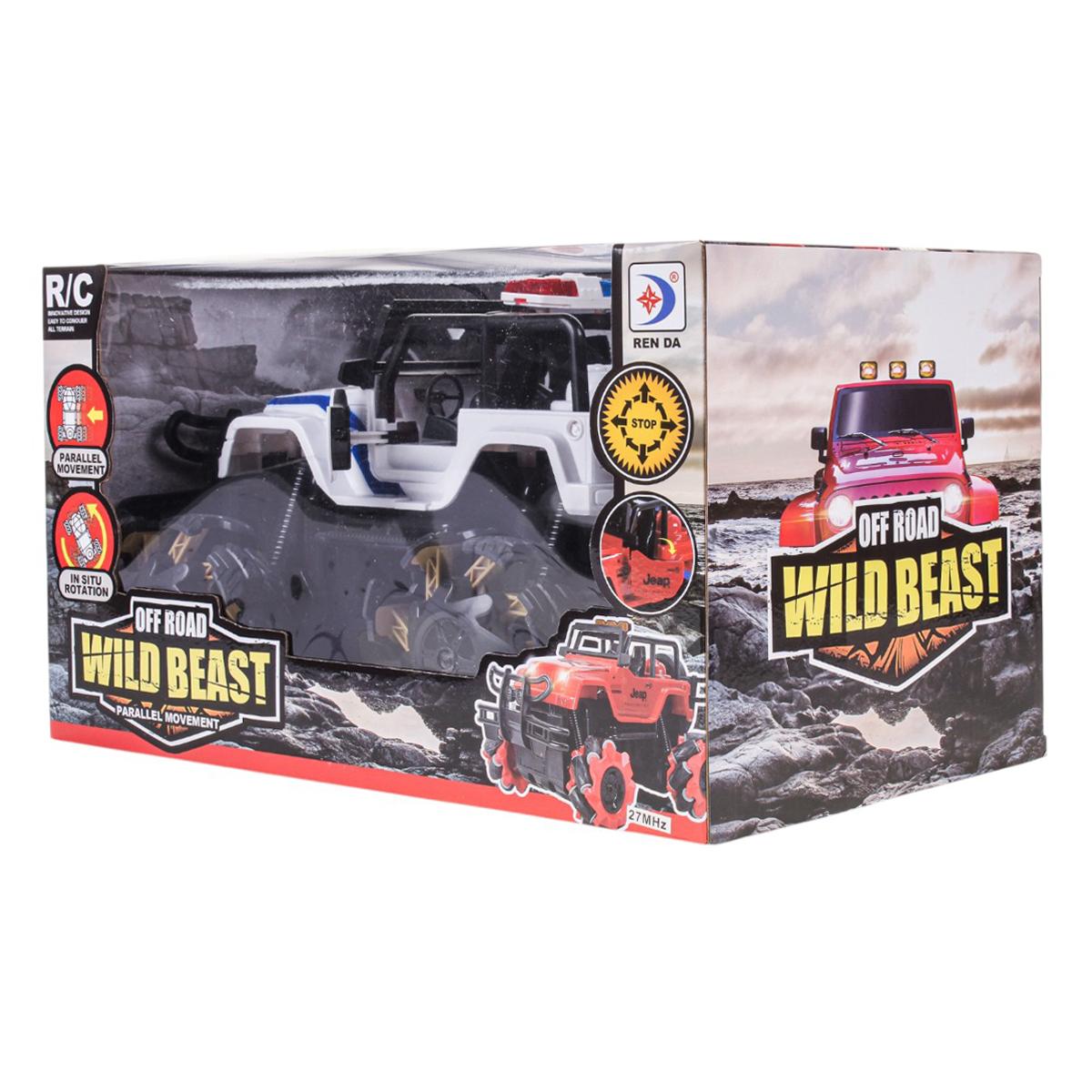 Джип на радиоуправлении «WILD BEAST» с функцией 360°, движение боком, 32,5×21×19 см, черно-белый с красным