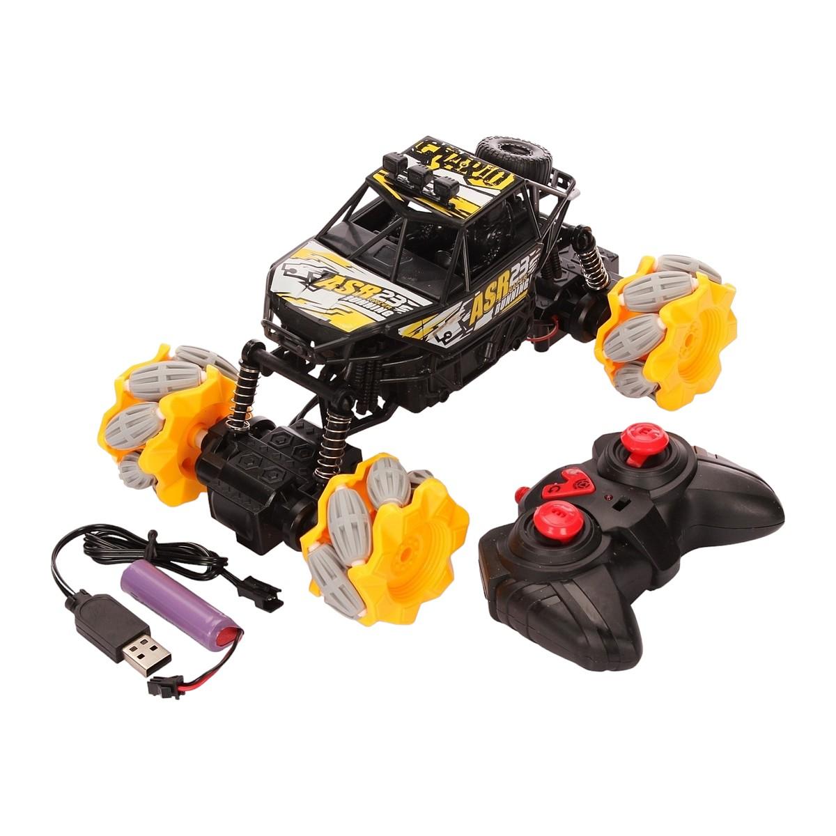 Чёрный корпус с жёлтыми акцентами выделяется на любой поверхности. Эргономичный пульт с цветными джойстиками удобно лежит в детской руке. Простая зарядка через USB-кабель позволяет быстро вернуться к игре!