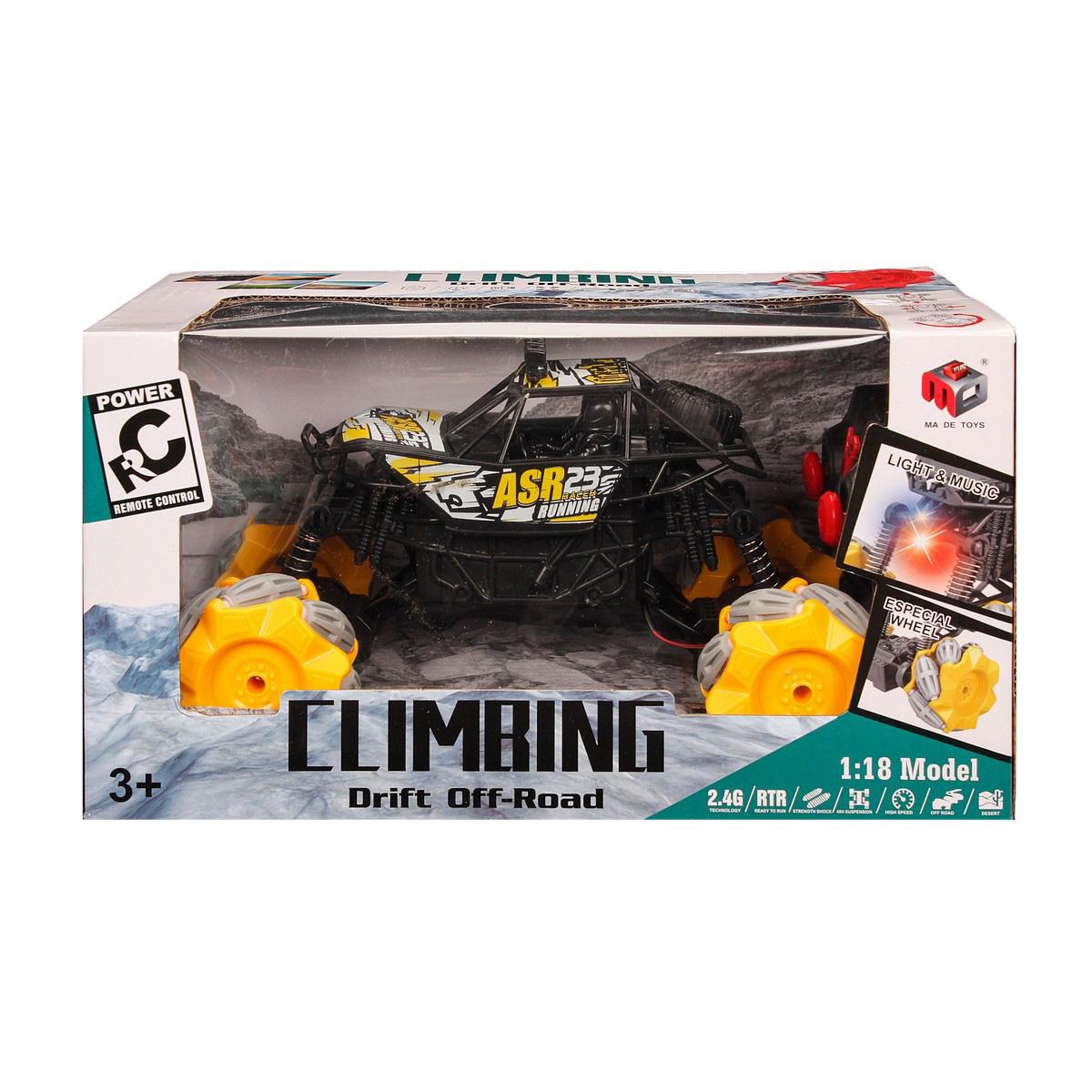Радиоуправляемый джип с пультом, 1:18, черный/желтый, подвеска, аккумулятор в комплекте