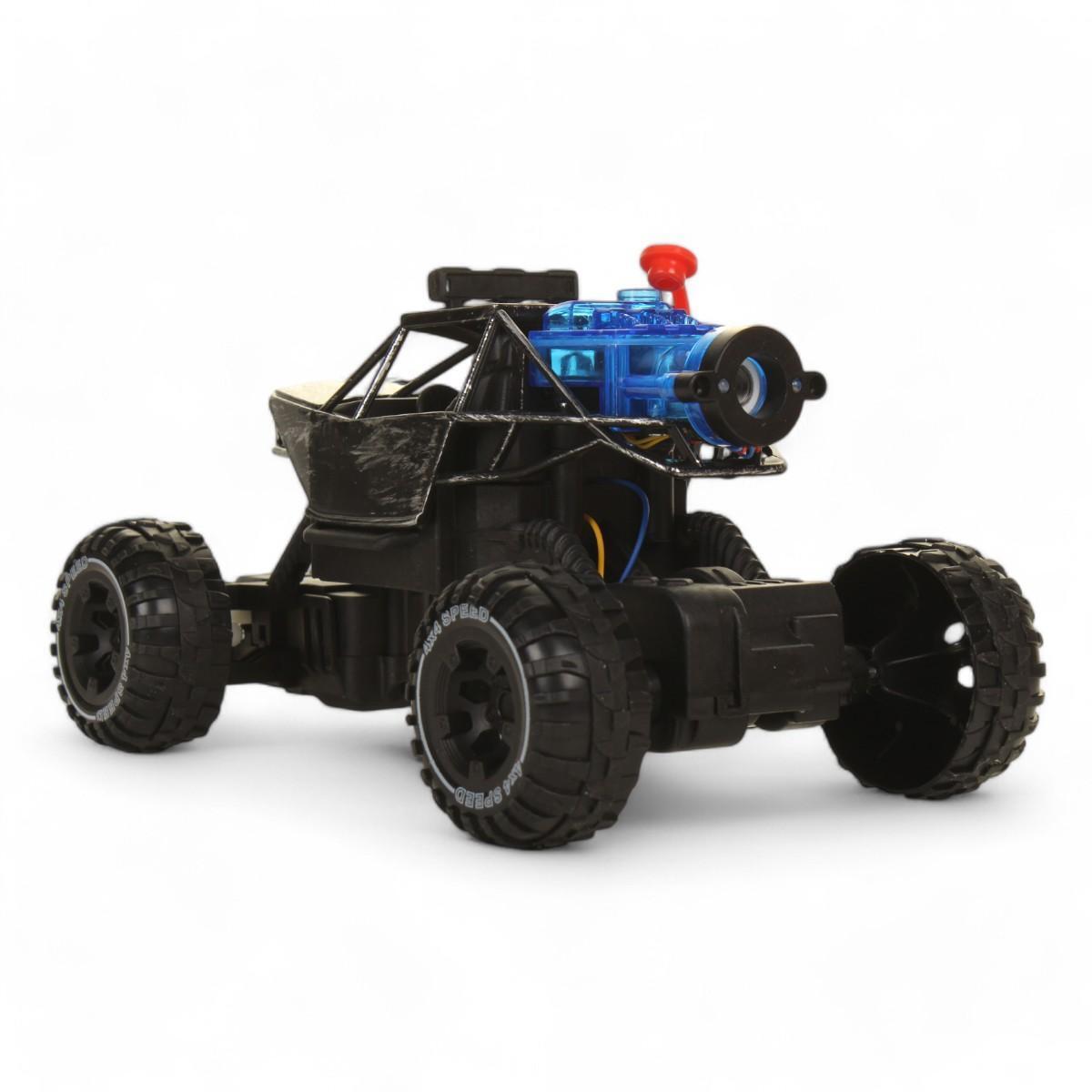 Автомобиль управляется с помощью удобного пульта дистанционного управления, оснащённого антенной и жарким управлением. Колёса крупные с глубоким протектором обеспечивают отличное сцепление с поверхностью, что делает игру ещё более увлекательной и реалистичной. Световые эффекты и туманное распыление добавляют реалистичности и создают эффект настоящего внедорожника.