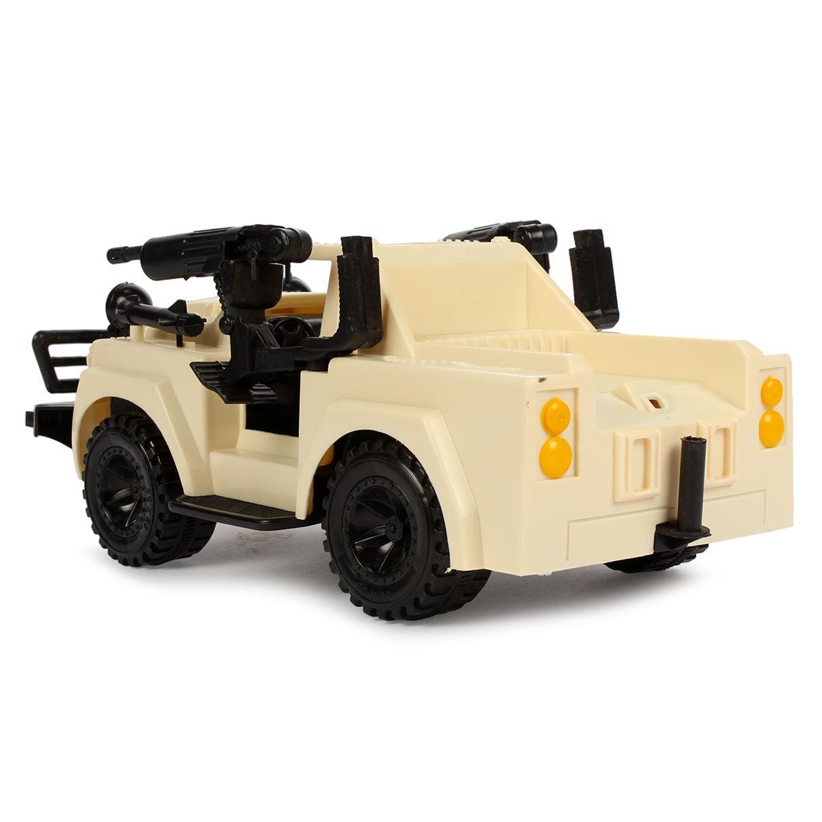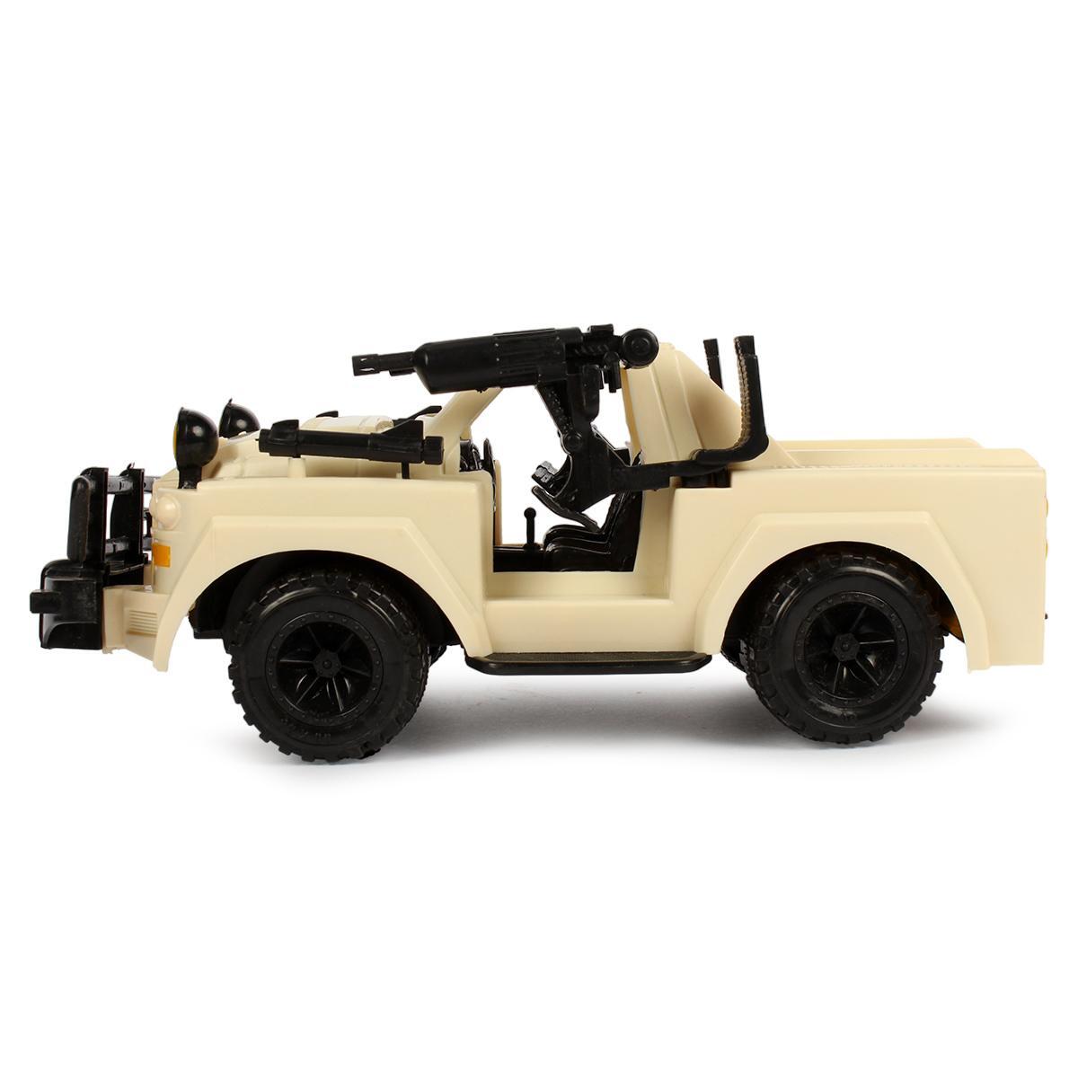 Игрушечный джип с детализированным дизайном станет идеальным спутником для мальчиков от 3 лет. Прочный пластиковый корпус в кремово-бежевых тонах с черными акцентами выдержит активные игры дома и на улице.