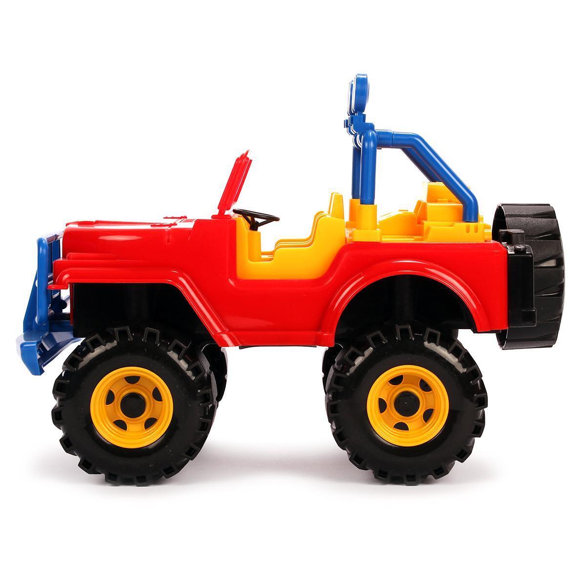 Этот внедорожник создан специально для приключений по самым сложным маршрутам. Благодаря мощным рельефным колесам и усиленному бамперу, машинка легко преодолевает неровности и препятствия, развивая у ребенка моторику и воображение. Игрушка выполнена из безопасного прочного пластика, устойчивого к воздействию солнца и механическим повреждениям, что гарантирует долгий срок службы и надежность эксплуатации.