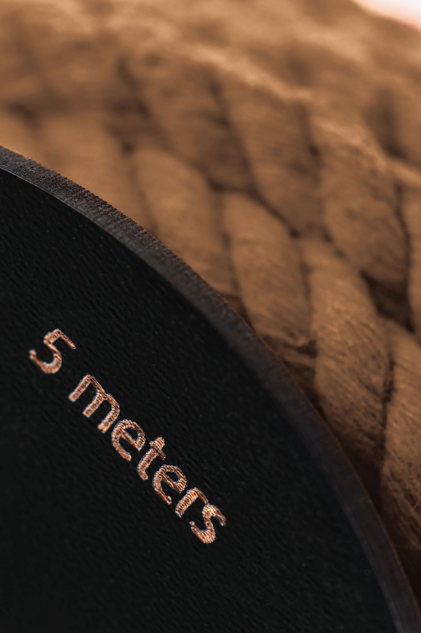 Практичные размеры: веревка имеет длину 5 метров, что позволяет воплощать любые идеи без ограничений. Материал — джут, известный своей прочностью и мягкостью.