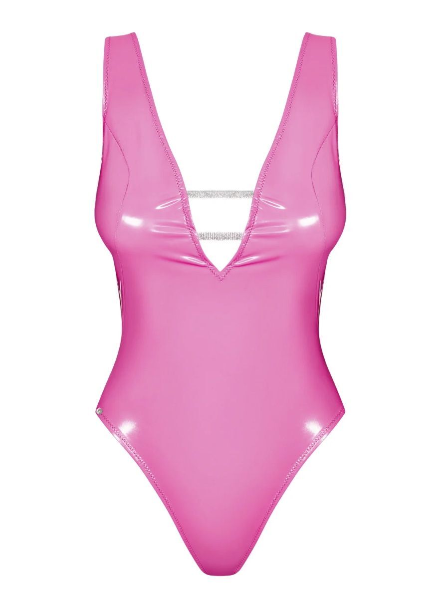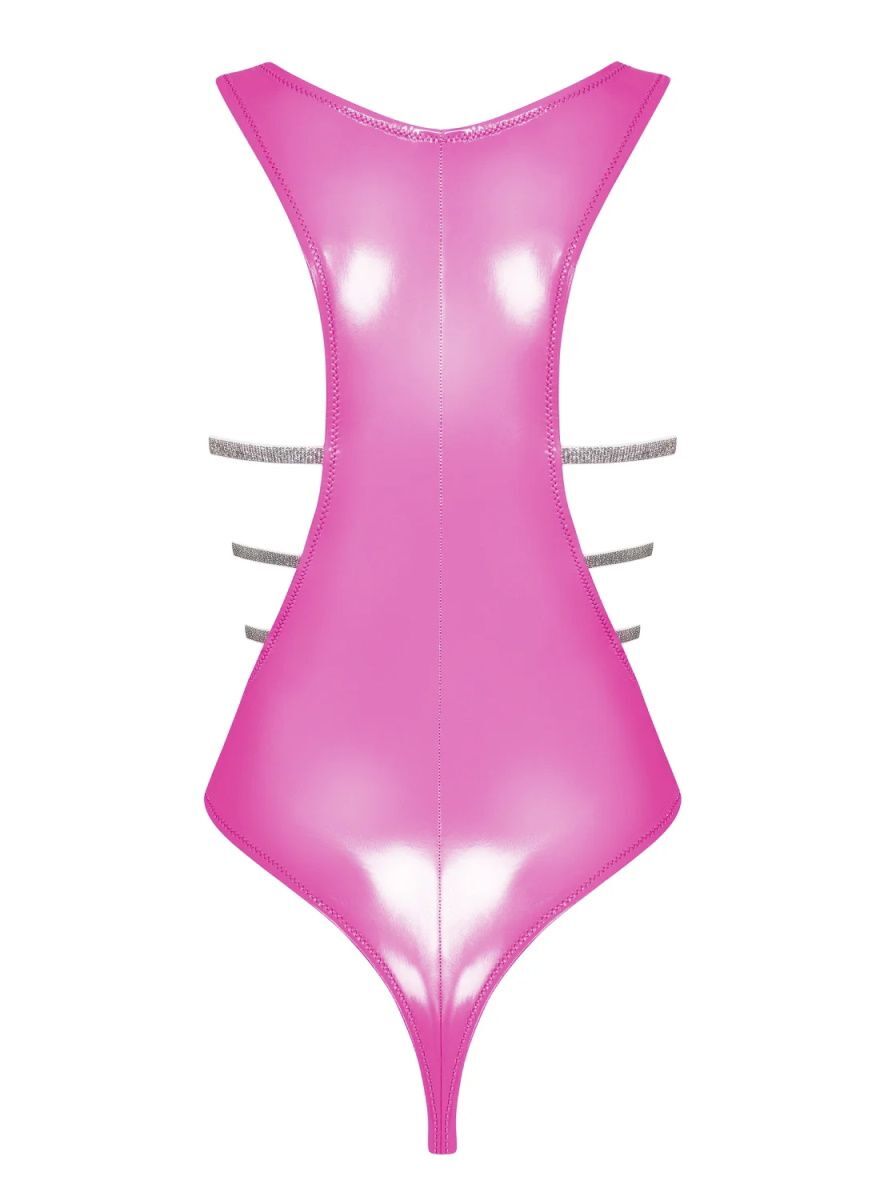 Погрузитесь в мир соблазна и уверенности с эротичным боди Lollypopy. Это боди, выполненное из глянцевого эластичного материала, имитирующего кожу, подчеркнет ваши изгибы и добавит нотку игривости в ваш образ. Глубокий V-образный вырез декольте и открытые боковинки, декорированные блестящими стрэпами, создают эффектный и притягательный вид, который не оставит равнодушным никого.