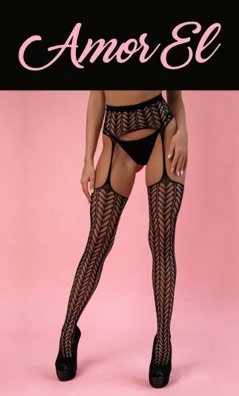 Чулки с поясом 'AmorEl', размер S-M-L, черные, сетчатые, нейлоновые