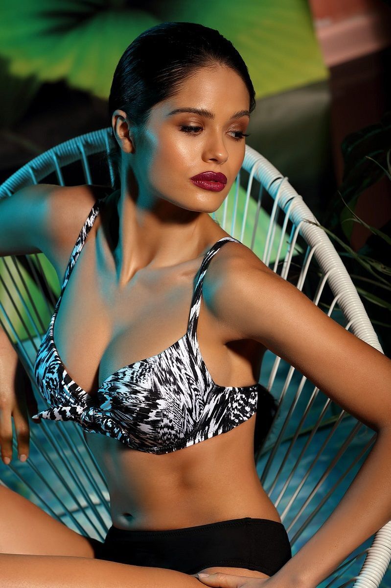 Купальник состоит из бюстгальтера с формованными эластичными чашками и съемными пуш-ап вкладышами, что позволяет вам регулировать уровень поддержки в зависимости от ваших предпочтений. Бретельки купальника регулируются по длине, что обеспечивает идеальную посадку на любой фигуре. На спине предусмотрена застежка, что делает его удобным в использовании.