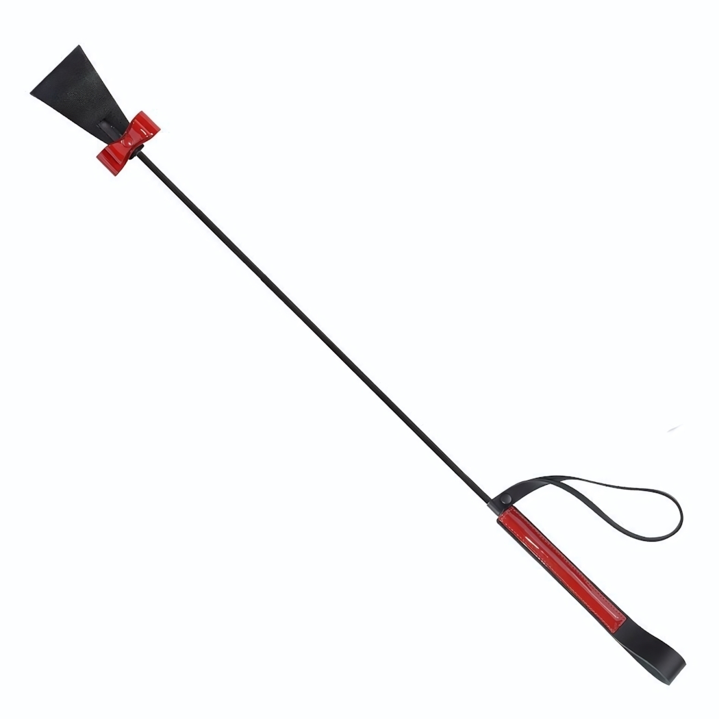 Стек идеально подходит для использования в BDSM-практиках, а также может служить элементом декора. Гладкая цилиндрическая рукоять, обтянутая черной кожей с красной вставкой, обеспечивает удобный захват и легкость в управлении. Удобная кожаная петля на запястье позволяет надежно фиксировать изделие, что делает его использование еще более комфортным.