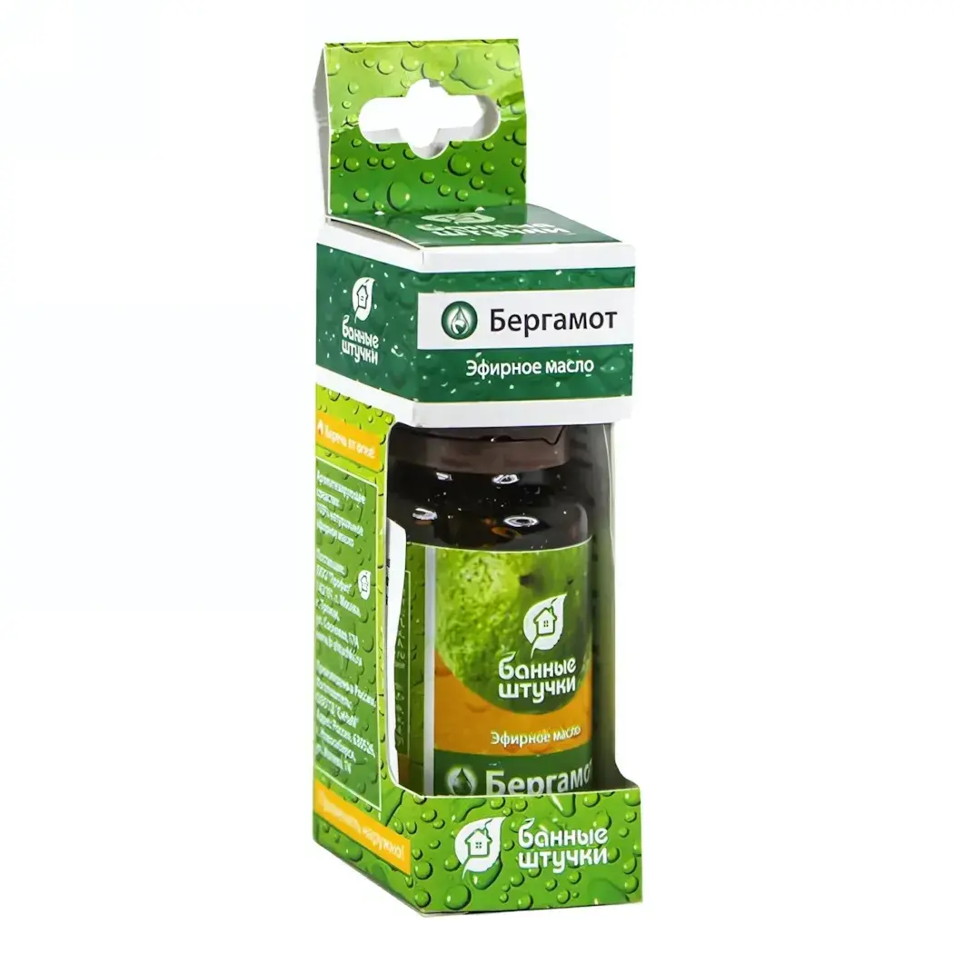 Флакон с эфирным маслом выполнен из темного стекла, что защищает содержимое от света и сохраняет его полезные свойства. Упаковка оформлена в зеленых тонах с изображением капель воды, что подчеркивает натуральность продукта. Эфирное масло «Бергамот» — это не только аромат, но и здоровье, которое вы можете привнести в свою жизнь.