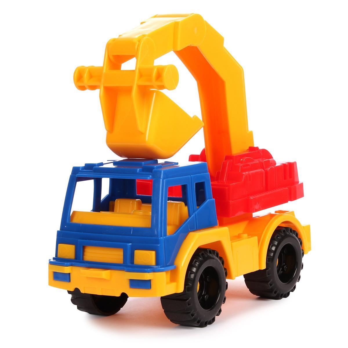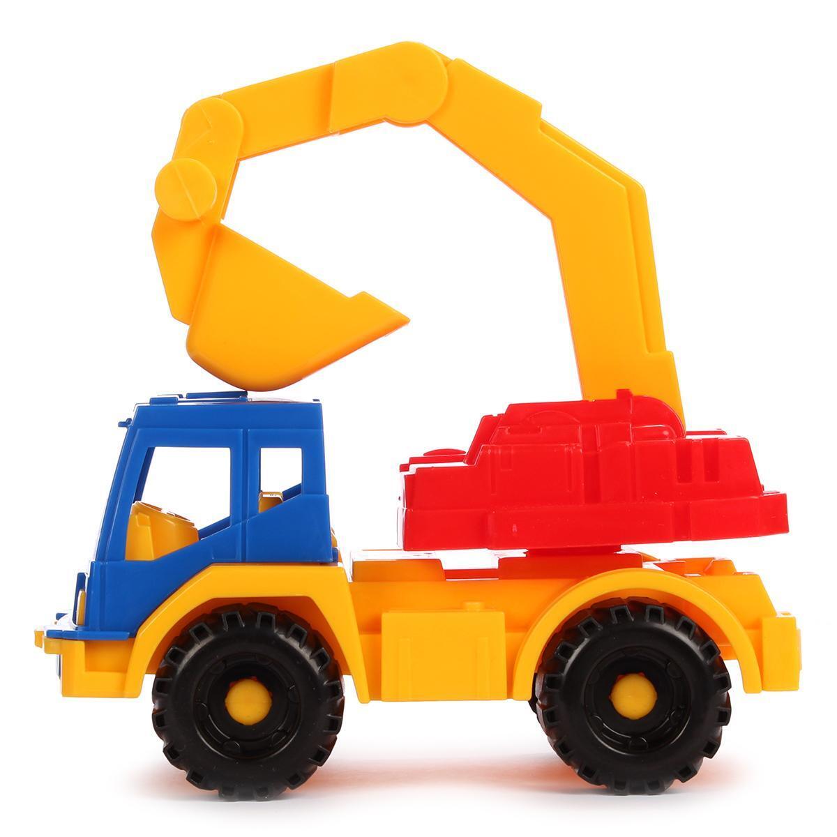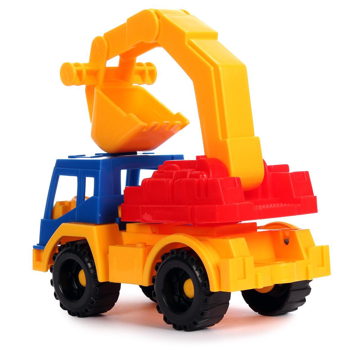 Экскаватор игрушечный «Кама» с подвижным ковшом, 20 см, пластик, желто-сине-красный