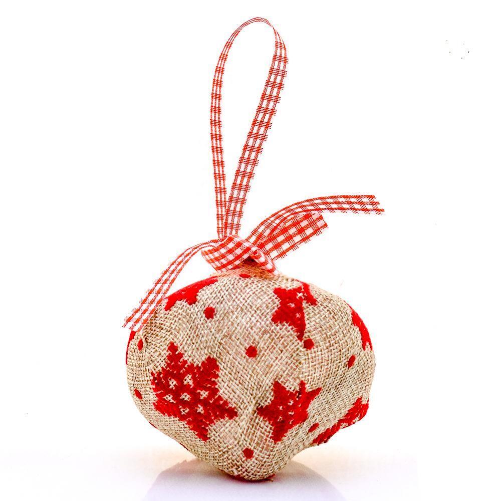 Елочное украшение 'Юла' 8см, мешковина с красным узором, 3шт