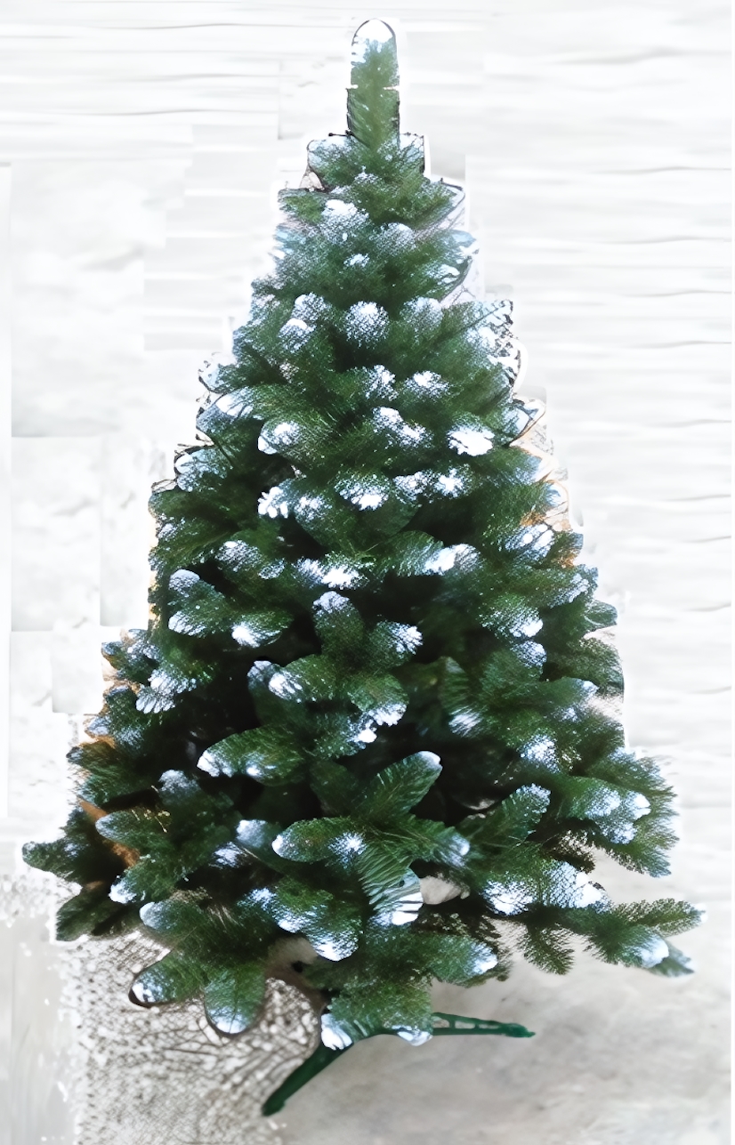 Диаметр побега – 7 см, хвоя выполнена из трёхслойного ПВХ (коричневый, тёмно-зелёный, светло-зелёный), что придаёт дереву натуральный вид. Высота 160 см позволяет разместить ель как в гостиной, так и в офисе, создавая праздничное настроение. Устанавливается на прочную подставку, поставляется в компактной упаковке для удобного хранения.