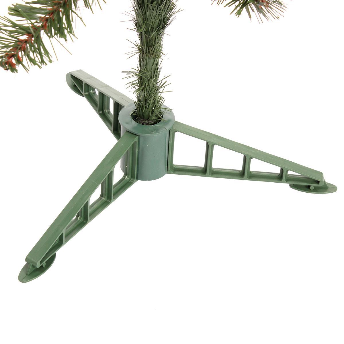 Высота модели – 150 см, цвет хвои – насыщенный зелёный, основание выполнено из пластика в виде трёхстойкой подставки с решётчатой структурой. Ветви изготовлены из лёгкого пластика, устойчивого к выцветанию.