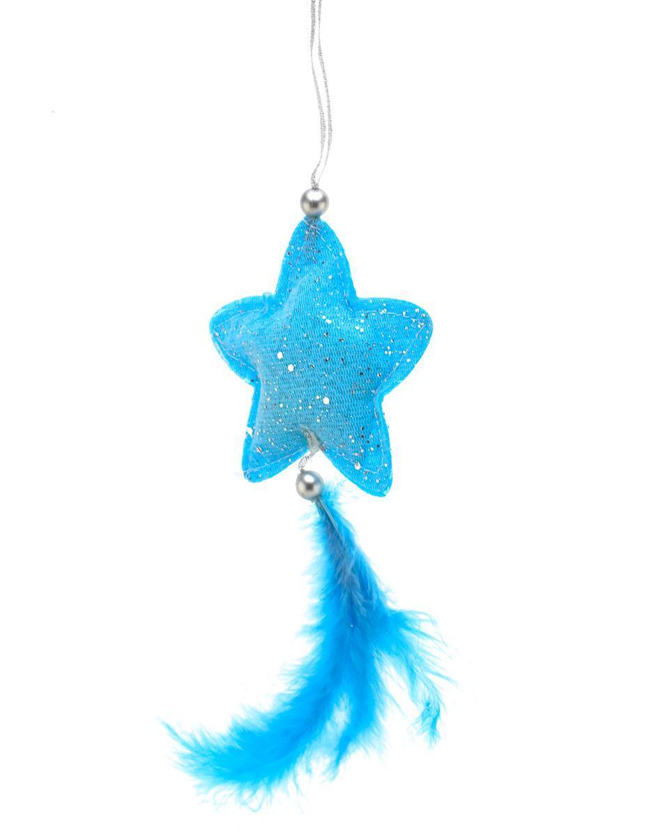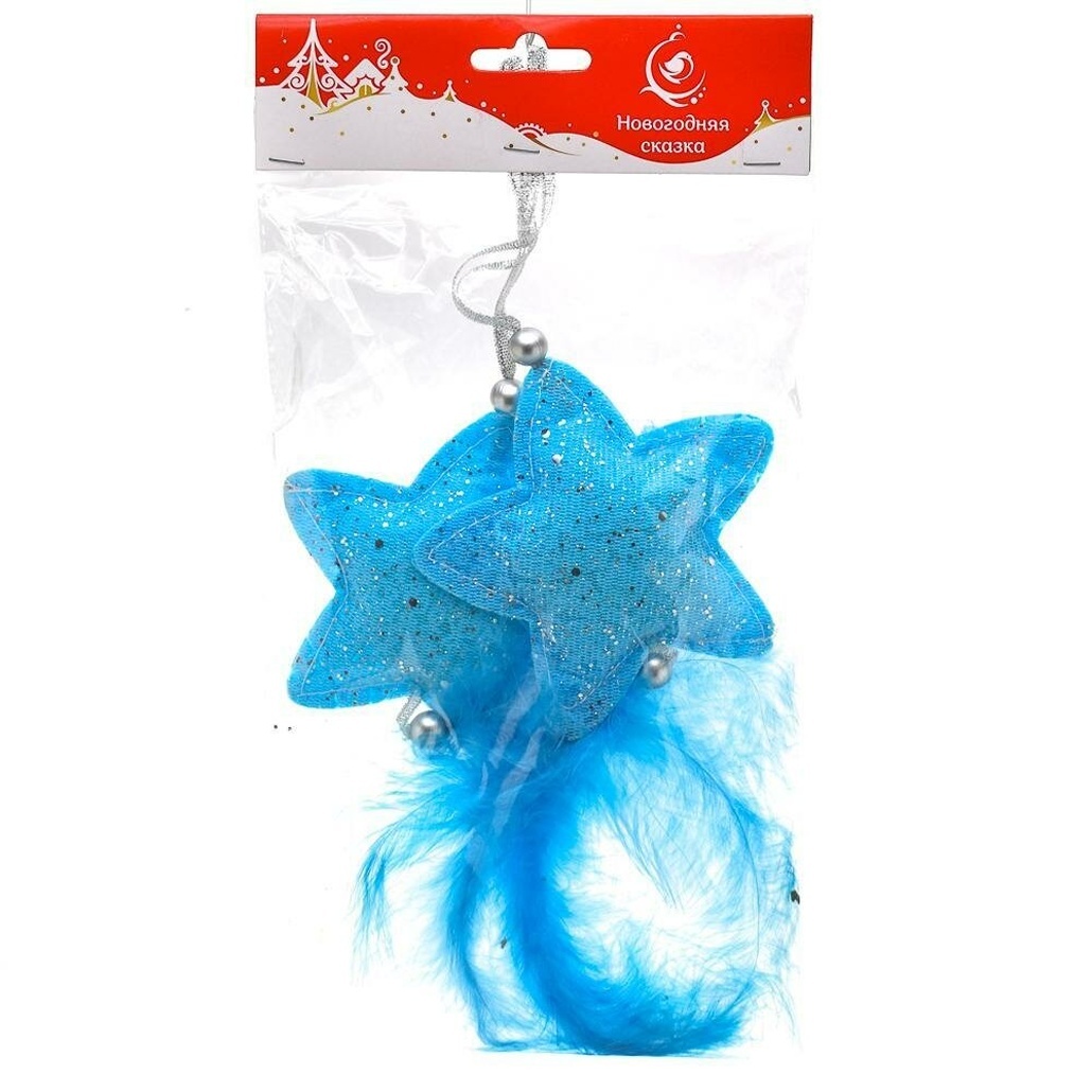 Данная звездочка имеет яркий голубой цвет, украшена блестками, а мягкий текстильный элемент добавляет уютной атмосферы. Подвеска снабжена специальной петлей для надежного крепления на ветвях вашей красавицы-елки, и вы сможете легко создать праздничный декор.