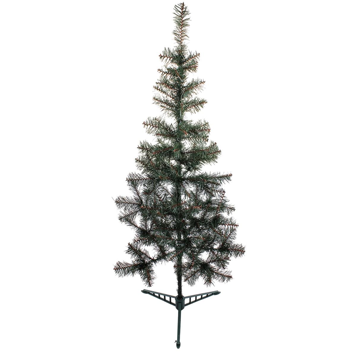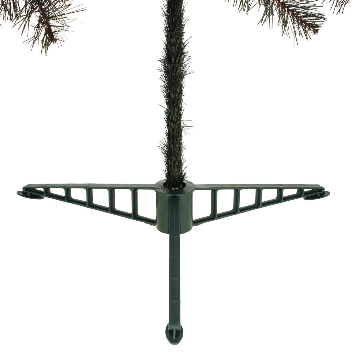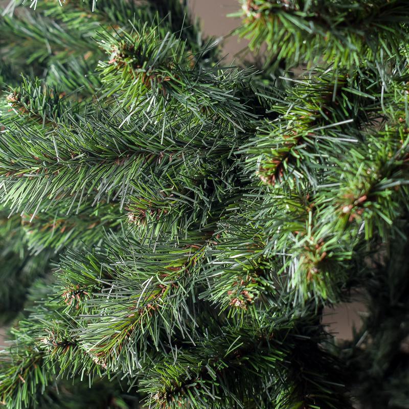 Каждое из 56 больших веток прочно прикреплено к конструкции, что гарантирует надежность и долговечность. Ствол делится на две части для легкой сборки и хранения, а три съемные пластиковые ножки обеспечивают устойчивость. Структура ели сделана из качественного ПВХ, что придает ней долговечность и легкость в уходе.