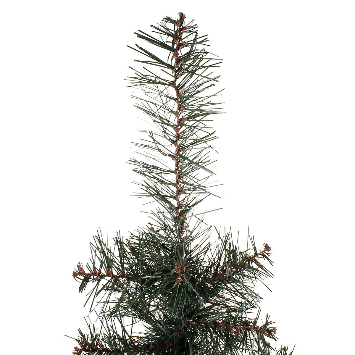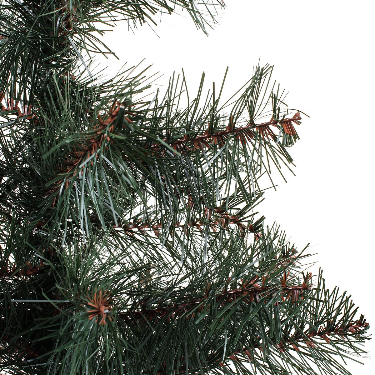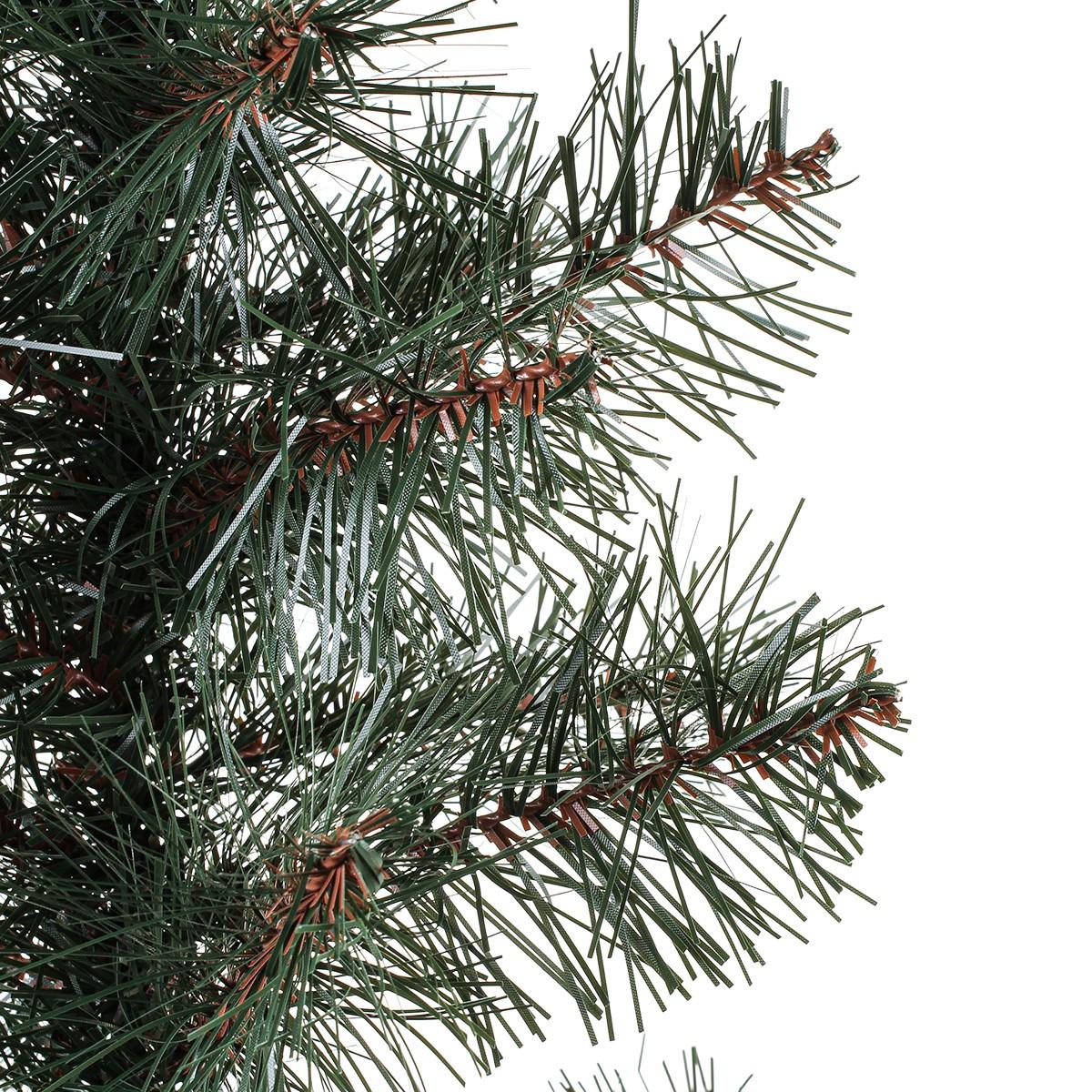 Каждое из 56 больших веток прочно прикреплено к конструкции, что гарантирует надежность и долговечность. Ствол делится на две части для легкой сборки и хранения, а три съемные пластиковые ножки обеспечивают устойчивость. Структура ели сделана из качественного ПВХ, что придает ней долговечность и легкость в уходе.