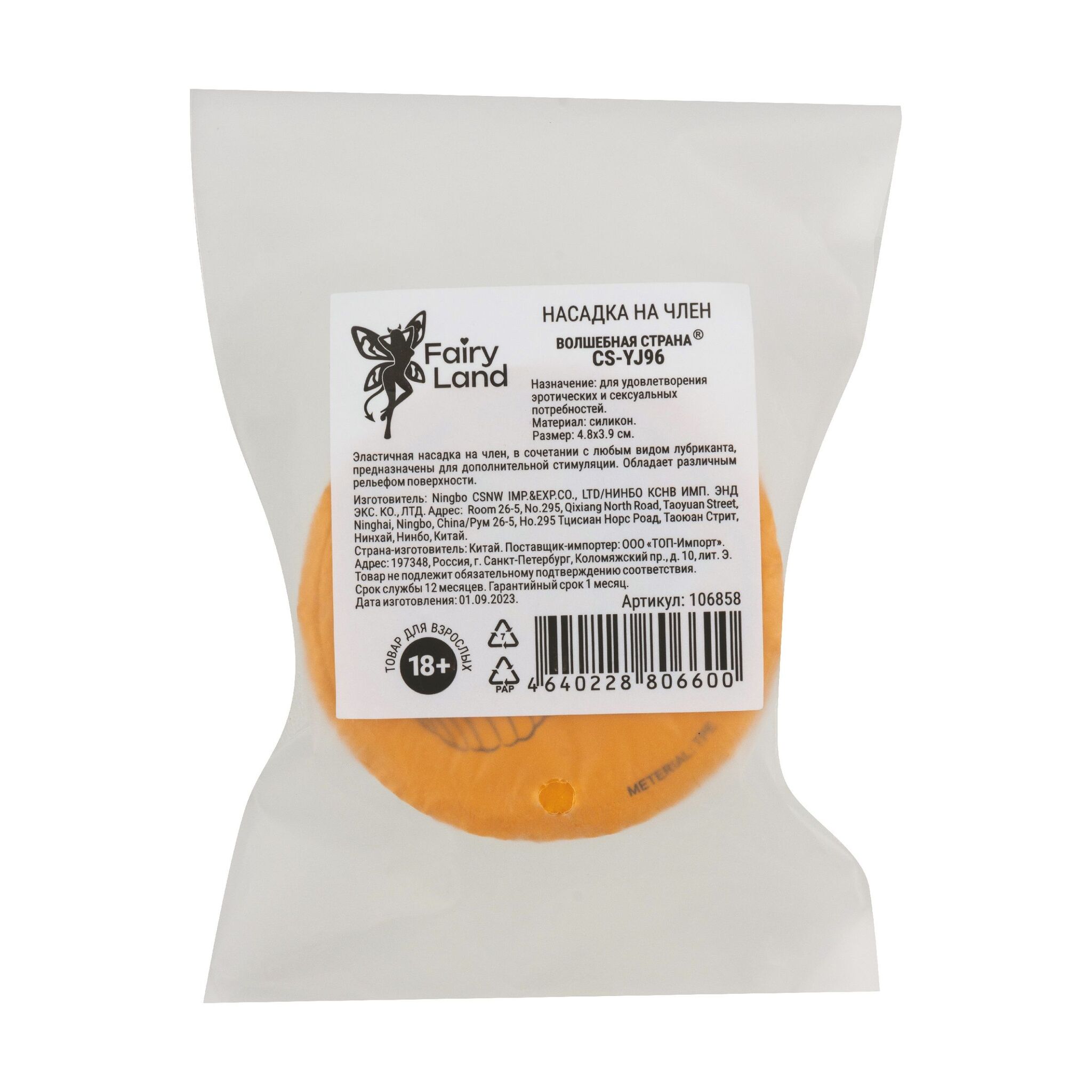 Цвет насадки — белый, что придаёт ей стильный и нейтральный вид. Она имеет длину 4.8 см и диаметр 3.9 см, что делает её подходящей для большинства пользователей. Насадка не вибрирует, но её рельефная структура создаёт уникальные ощущения. Продукт произведён в Китае и соответствует всем стандартам качества.