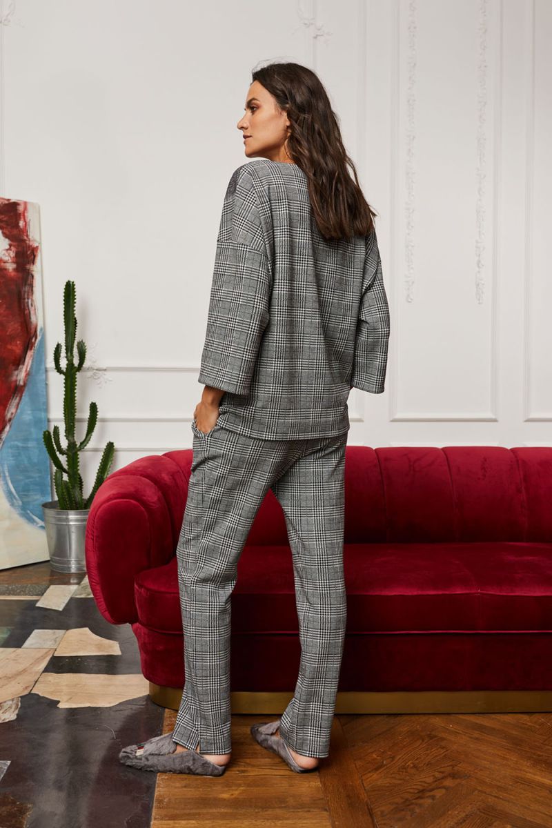 - Стильный дизайн — классический чёрно-белый клетчатый узор добавляет образу элегантности и легко сочетается с разной домашней одеждой.