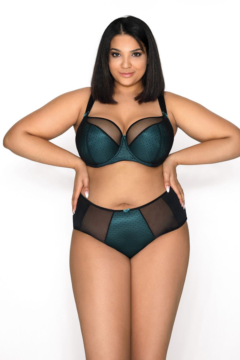 Бюстгальтер Nori создан для женщин, которым важны комфорт, надежная поддержка и изящный внешний вид. Модель с плотной чашкой на тонком поролоне помогает сформировать аккуратный силуэт и обеспечивает уверенную посадку, особенно при размере 90B. Сочетание черного цвета и глубокого зеленого оттенка с деликатным узором придает образу выразительность и женственность.