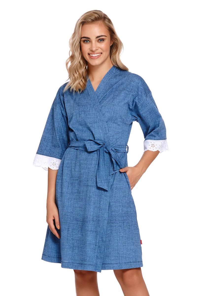Халат представлен в насыщенном синем цвете, который сочетается с большинством интерьеров. Размер M обеспечивает стандартную посадку. Рекомендуется бережная стирка в соответствии с инструкцией на ярлыке изделия для сохранения формы и качества ткани и кружевных элементов.