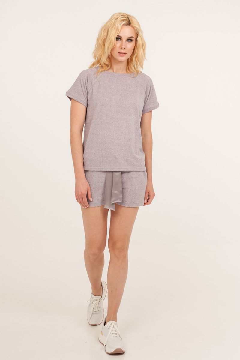 Этот женский комплект из топа и шорт создан для тех, кто ценит уют и стиль в повседневной жизни. Идеальный баланс между домашним комфортом и элегантным внешним видом позволяет носить его не только в стенах квартиры, но и для неспешных прогулок или встреч с друзьями в непринуждённой обстановке.