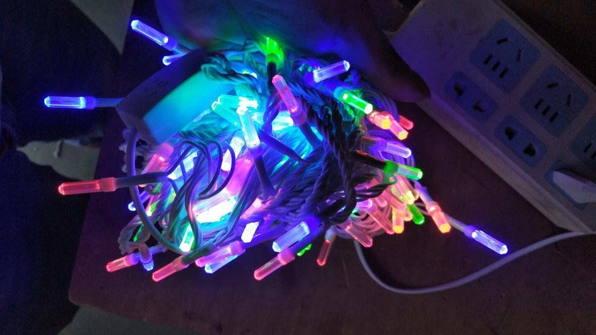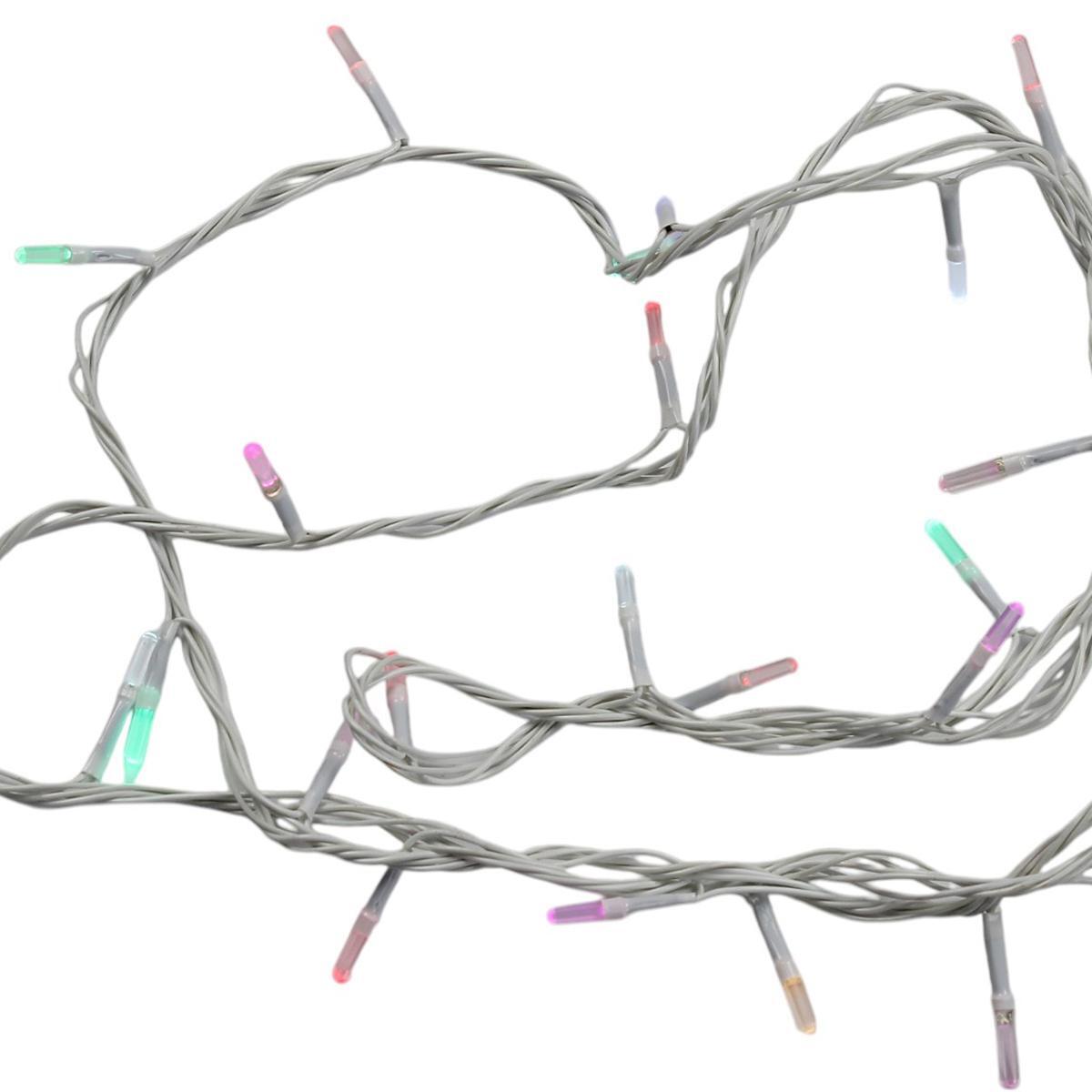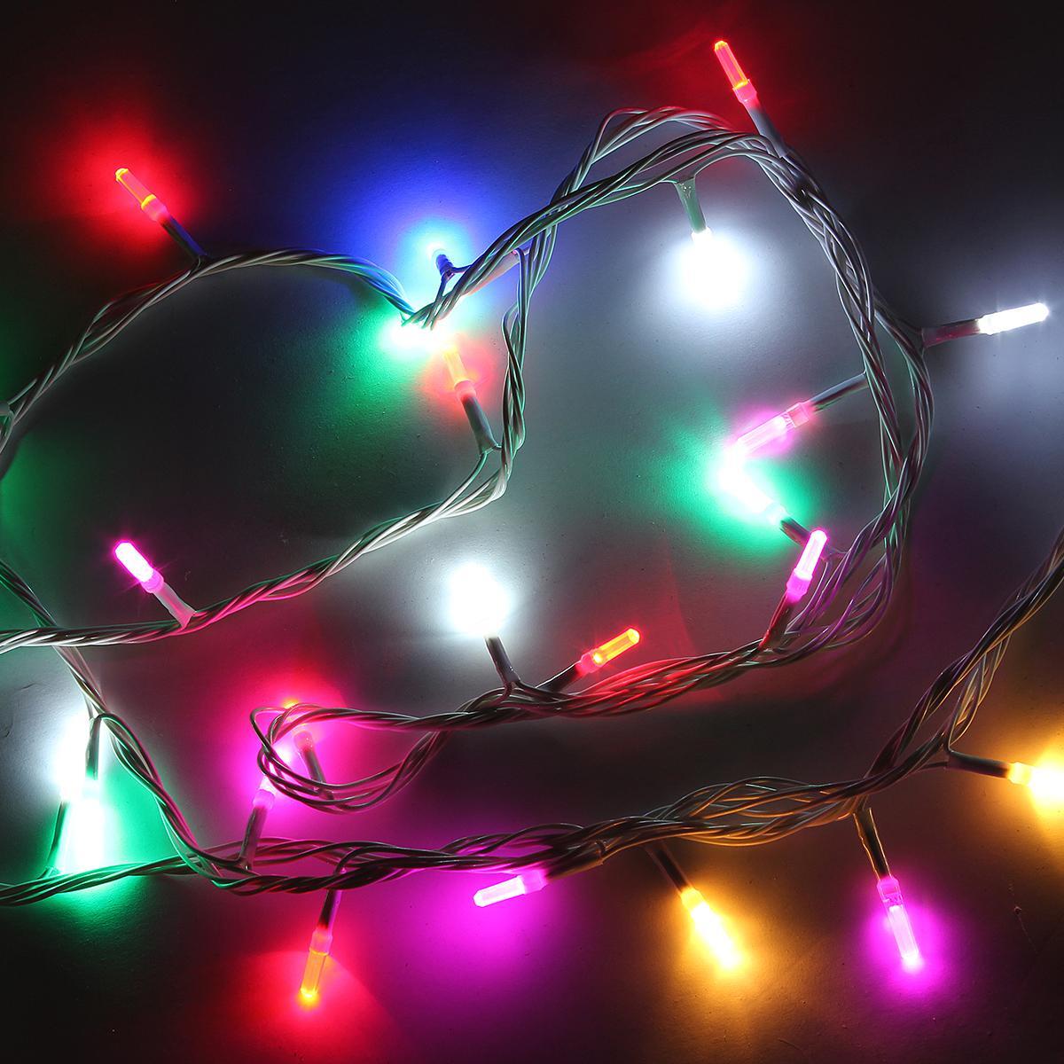 Практические детали: длина изделия около 9 метров, на проводе расположено примерно 100 светодиодов в разноцветной палитре; провод белого цвета, в конце — розетка для подключения к сети. Устройство подходит для использования в помещении и создаёт эффект праздника в любом пространстве.