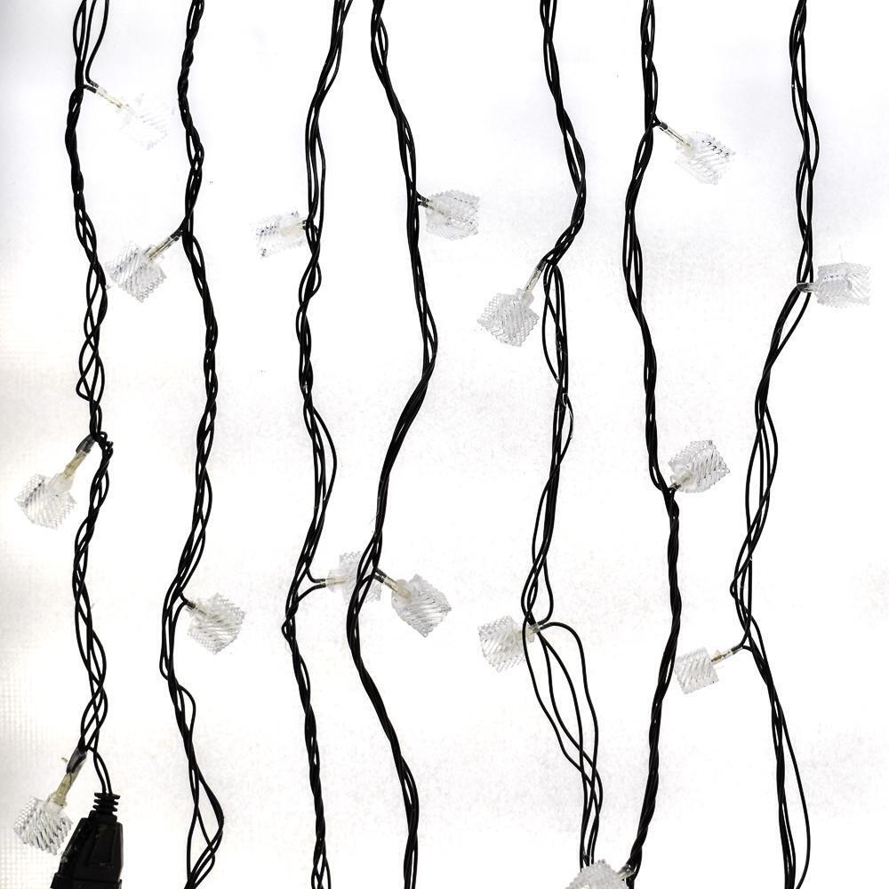 Гирлянда поставляется в одной упаковке. Провод гибкий, чёрного цвета, с фиксированной вилкой для подключения к розетке. Материал лампочек – прочный пластик, устойчивый к механическим повреждениям. Благодаря надёжной конструкции, изделие служит несколько сезонов без потери яркости.
