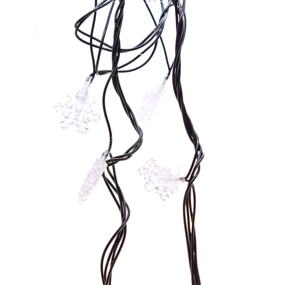 Гирлянда рассчитана на внутреннее использование и питается от стандартной розетки. Её можно безопасно разместить на елке, стене, окне или раме ворот, создавая эффект мерцающих снежинок благодаря насадкам‑снежинкам диаметром 3 см. Цвет свечения светодиодов — прозрачный, что обеспечивает рассеянное, мягкое сияние.