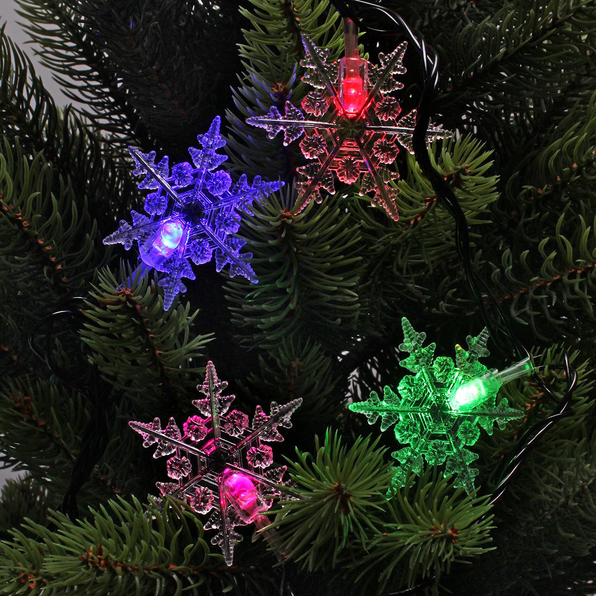 Электрогирлянда LED «Зима красавица» – уютный свет, 28 цветных снежинок, длина 5 м, насадка 5,8 см, пластик/металл