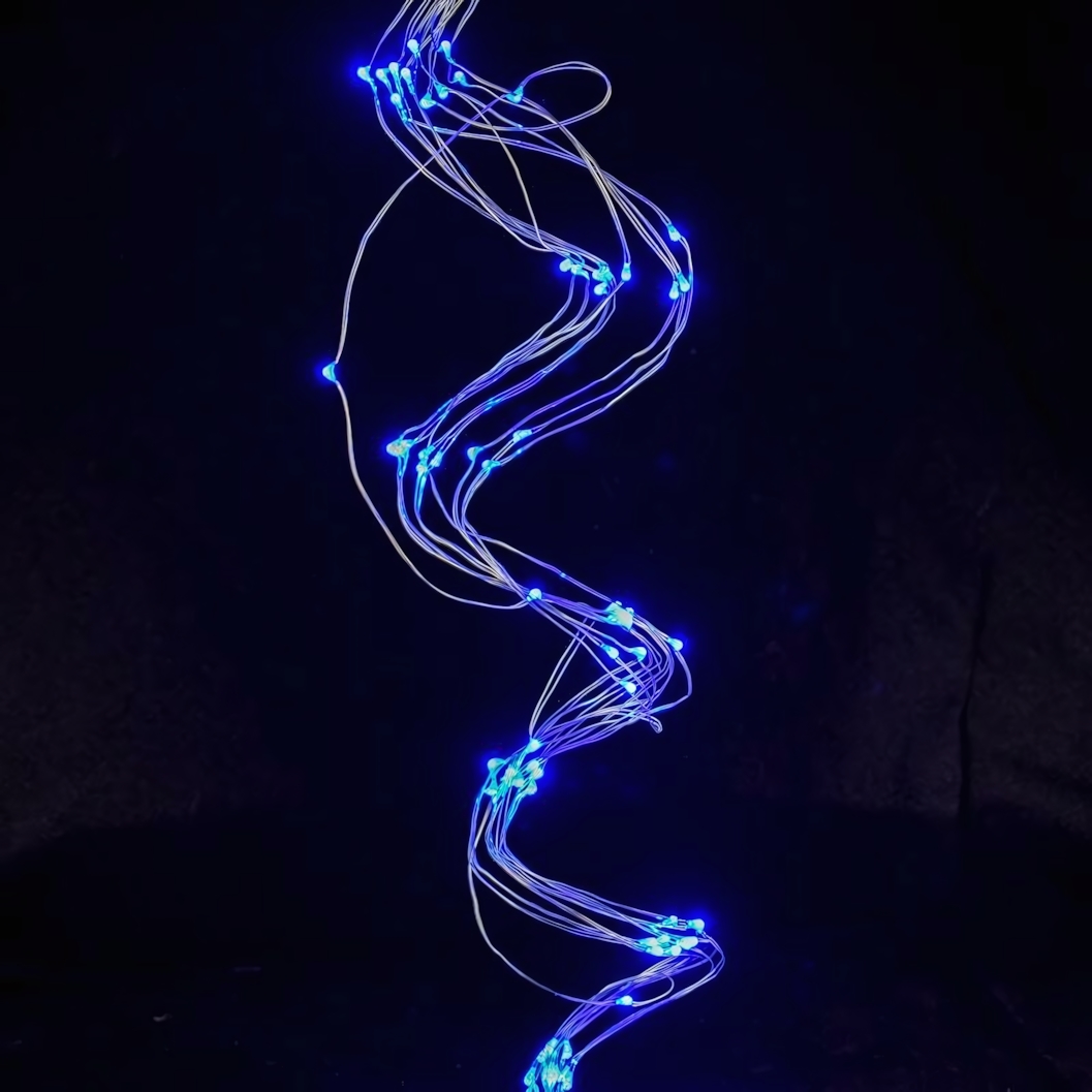 Гирлянда длиной 1 метр оснащена 100 LED-лампами, которые светятся ярким синим цветом. Она идеально подходит для использования в интерьере, создавая атмосферу праздника и уюта. Благодаря своей гибкой конструкции, гирлянда легко принимает любую форму, что позволяет вам проявить креативность в оформлении.