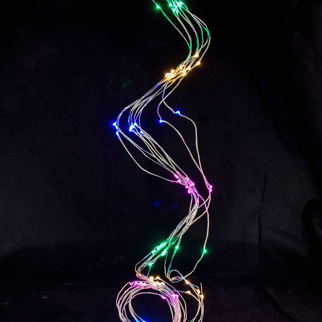 Яркая статичная подсветка с 100 разноцветными LED-лампочками мгновенно преобразит ваш интерьер. Идеальное решение для уютного декора комнаты, праздничного оформления или романтического вечера.