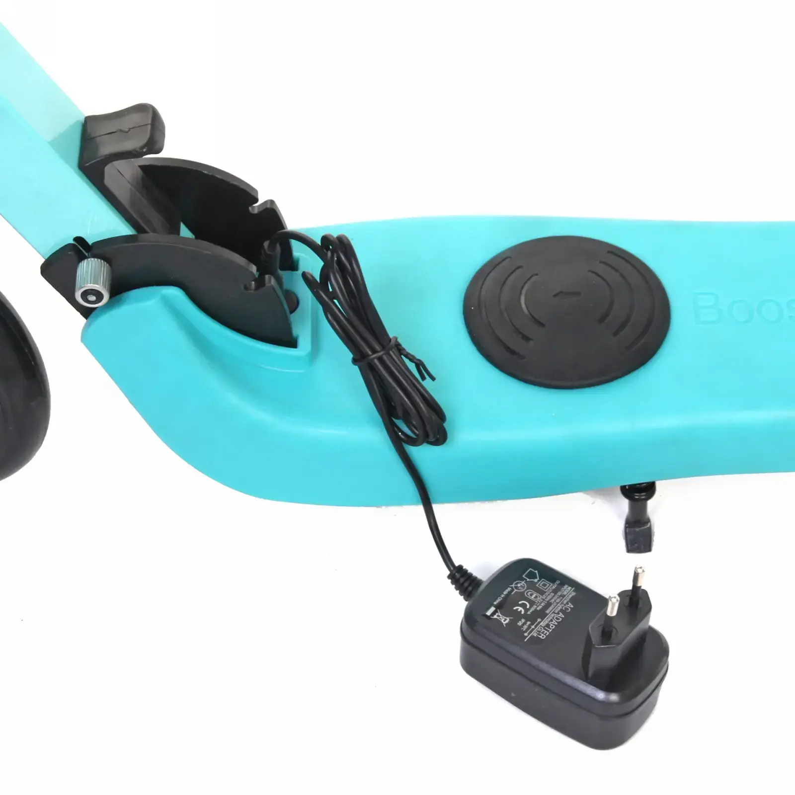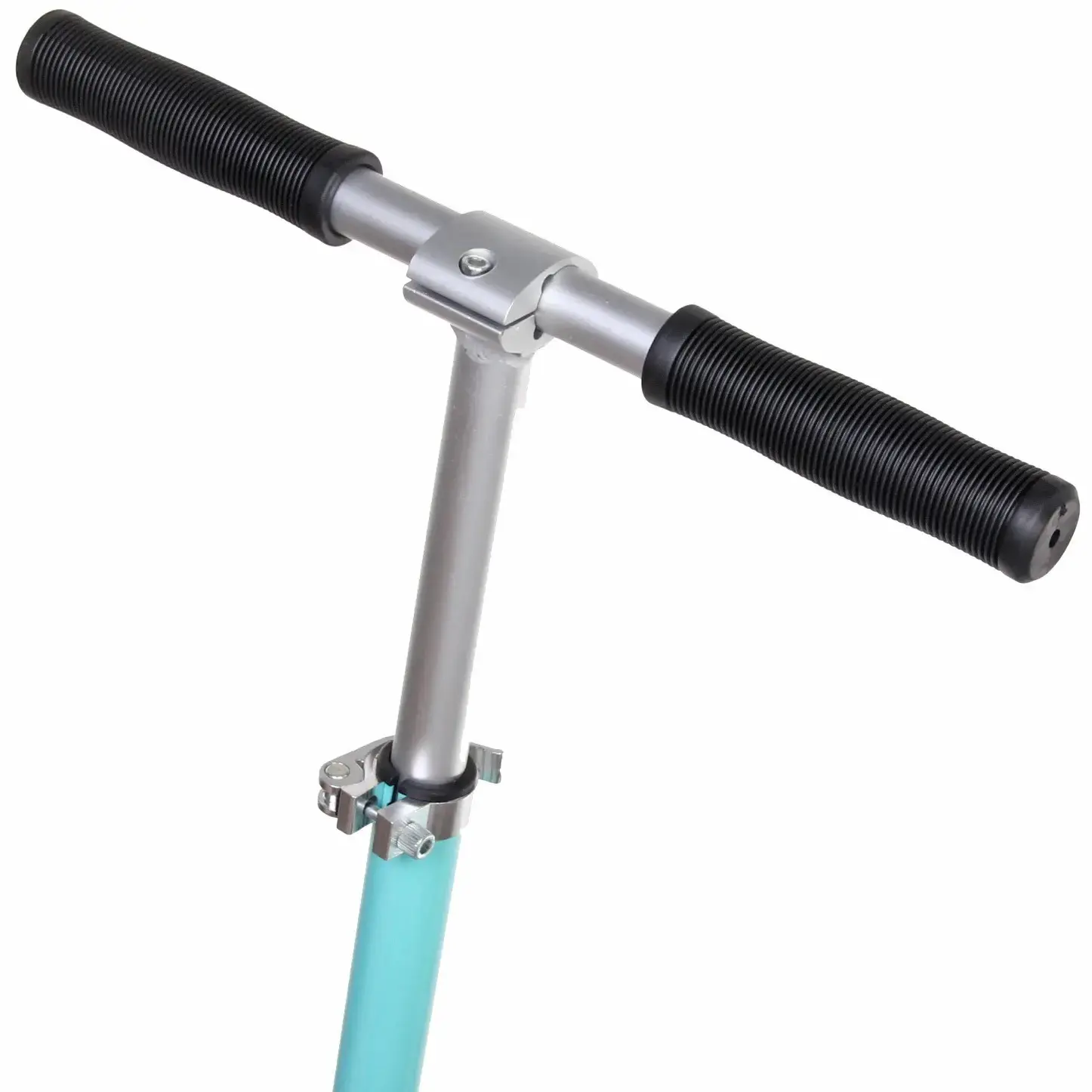 Размеры в сложенном состоянии: 70x87 см. Вес конструкции позволяет переносить самокат одной рукой. Голубой цвет корпуса сочетается с чёрными элементами — стильный дизайн понравится детям и подросткам.