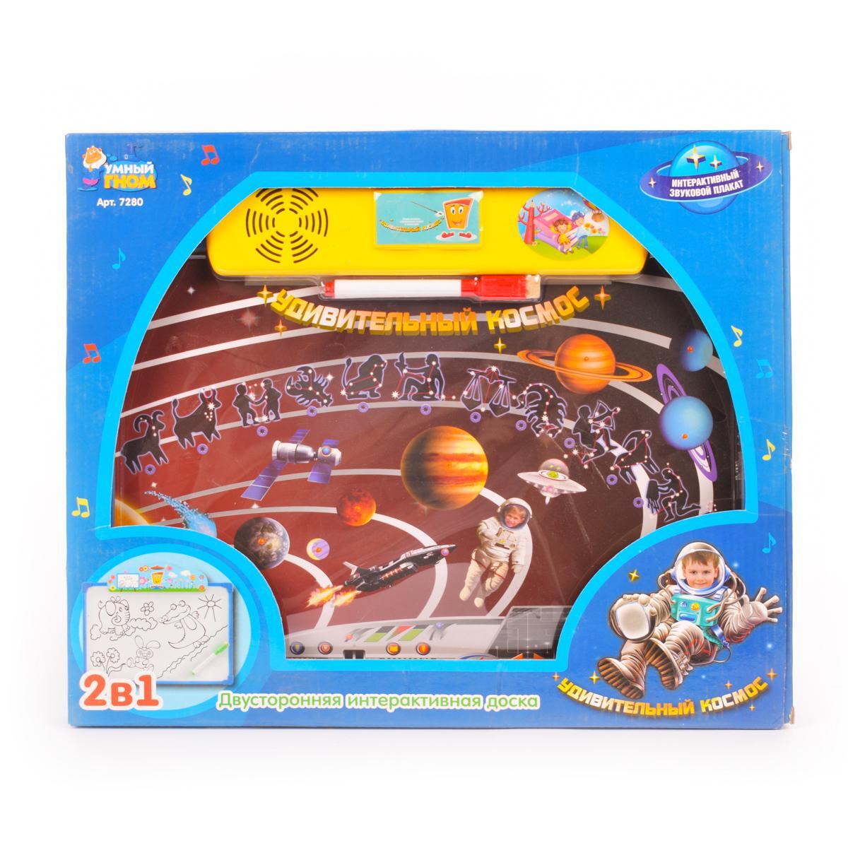Интерактивная доска «Умный гном» 2в1: космос, звук, двусторонняя, маркер, обучение, арт.7280