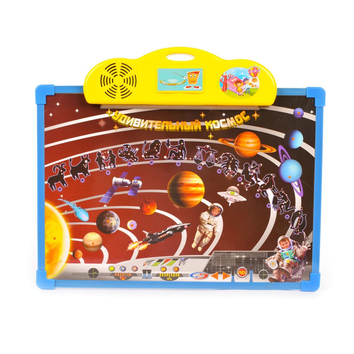 Двусторонняя интерактивная доска сочетает образовательные функции и творческое развитие. Звуковое сопровождение с голосами персонажей превращает изучение астрономии в увлекательное приключение.