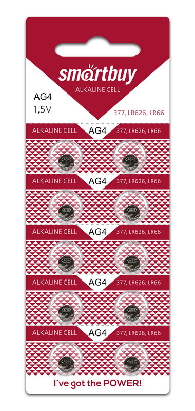 Каждая батарейка имеет напряжение 1,5V и подходит для устройств, требующих элементов типа AG4, 377, LR626 и LR66. Упаковка выполнена в ярком красном цвете с белыми и черными элементами, что делает ее заметной на полке. Не упустите возможность обеспечить надежное питание для ваших устройств с элементами Smartbuy AG4!
