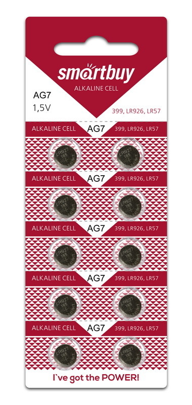 Батарейка AG7 Smartbuy, 1.5V, 9.5х2.6мм, для часов и калькуляторов
