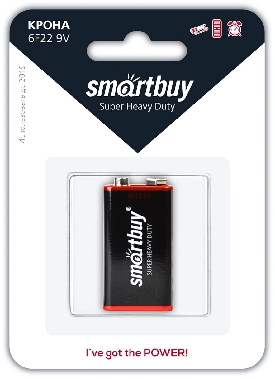 Элемент питания Smartbuy 'F22 BL/1', солевой, 9V, для часов, пультов, электробритв