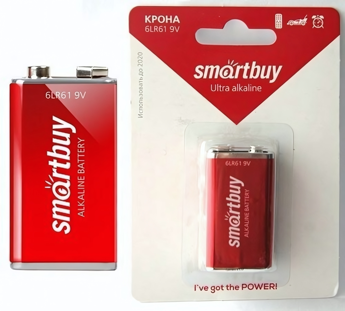 Батарейка щелочная Smartbuy 9V 'Ultra Alkaline', типоразмер 6F22, повышенная мощность