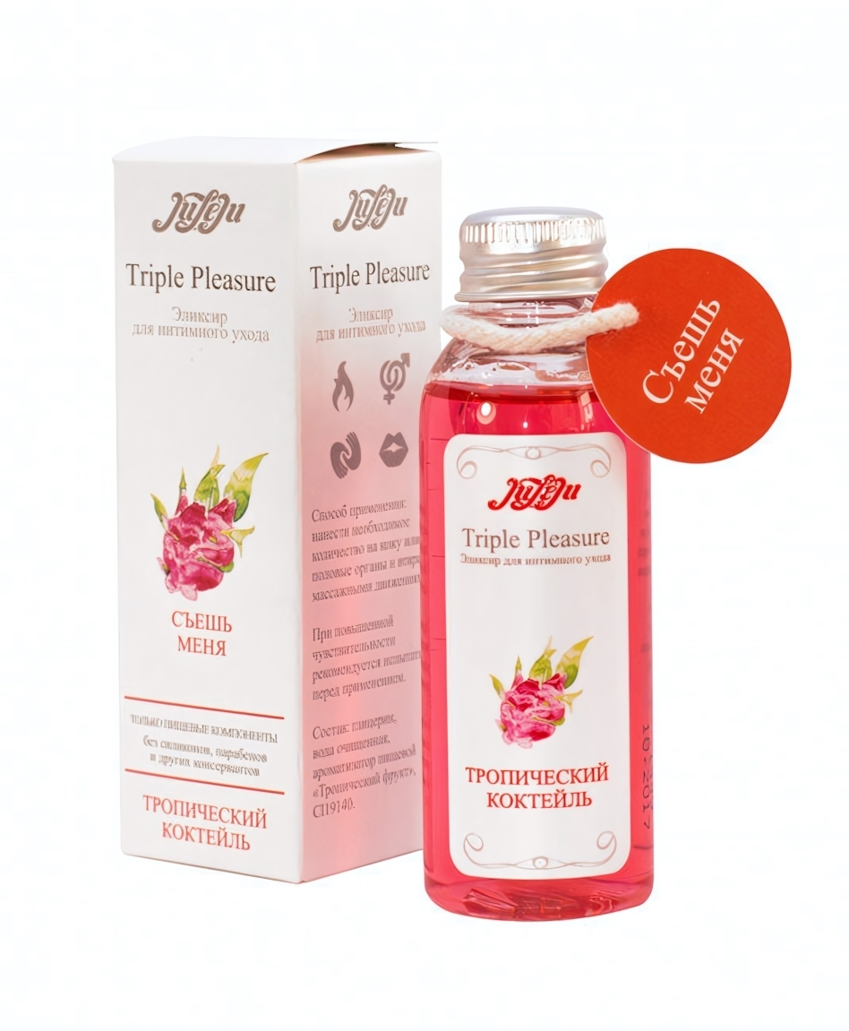 Погрузитесь в мир наслаждения с эликсиром для интимного ухода 'Triple Pleasure'. Этот уникальный продукт создан для того, чтобы сделать ваши моменты более яркими и запоминающимися. Благодаря своему тропическому аромату, он добавит нотку экзотики в вашу интимную жизнь, обеспечивая комфорт и удовольствие.